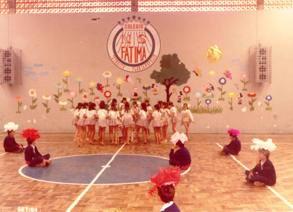 Refrão: Colégio Nossa Senhora de Fátima, recanto para ensinar e aprender.Educando para a justiça e a paz, tu sempre terás o nosso amor.