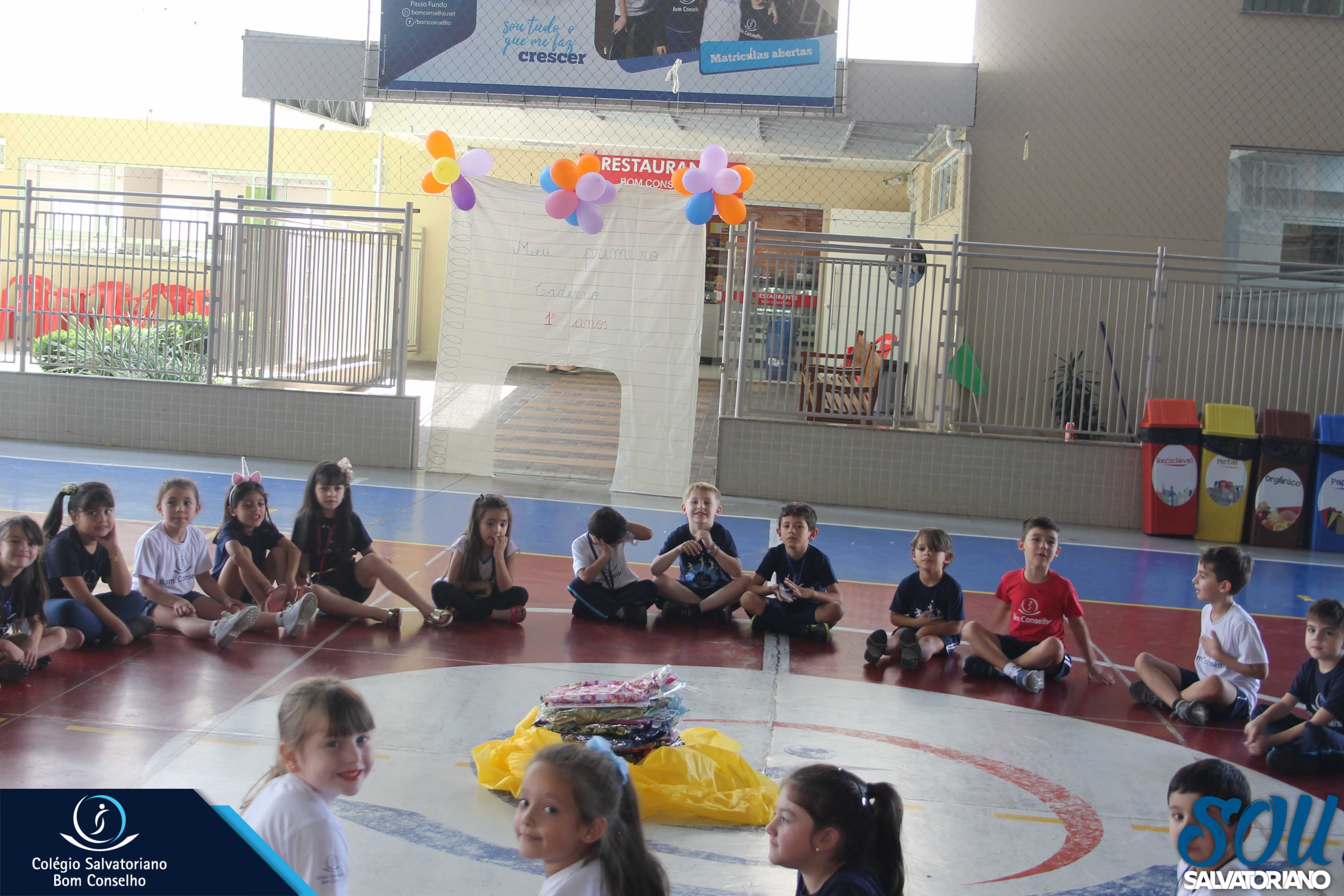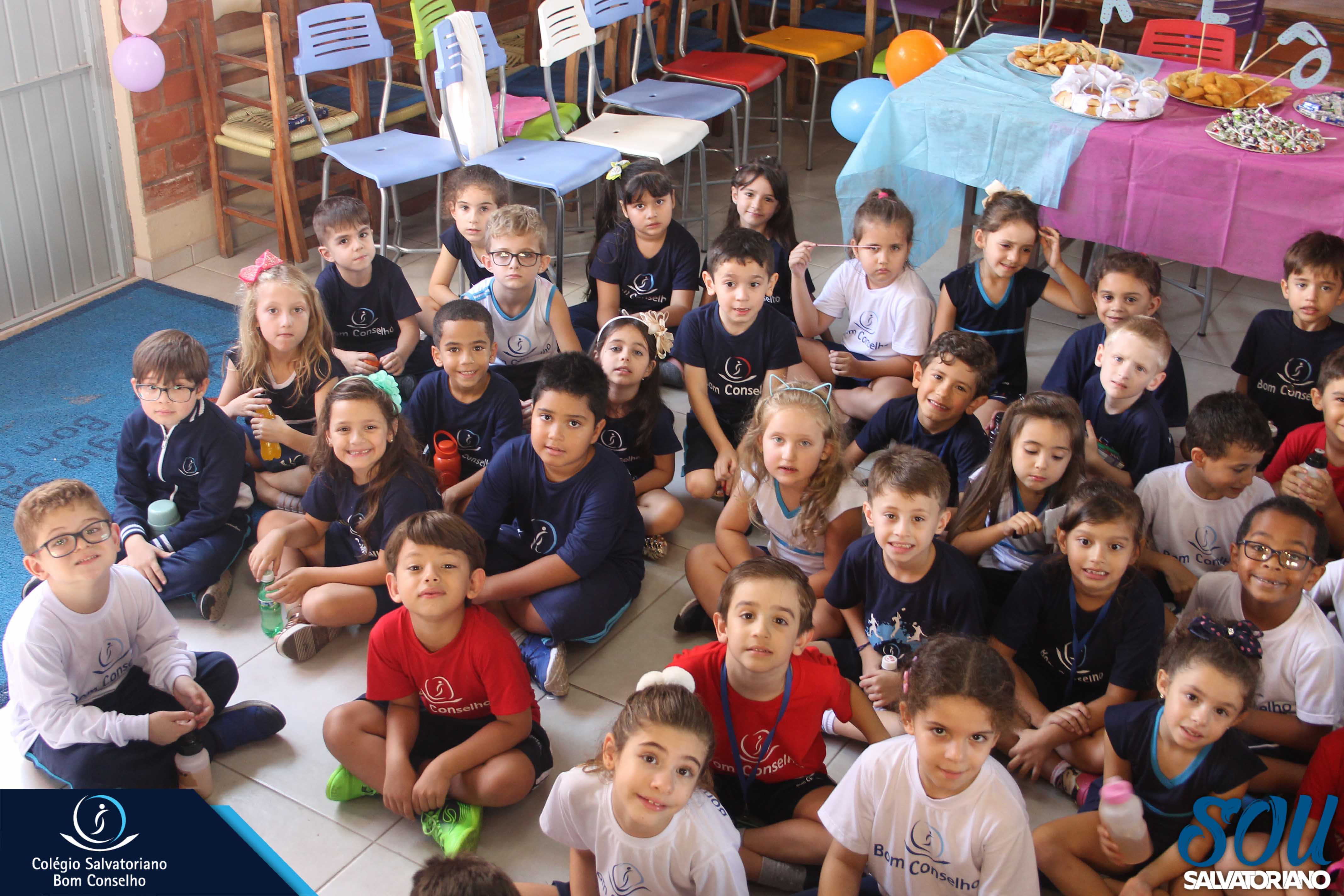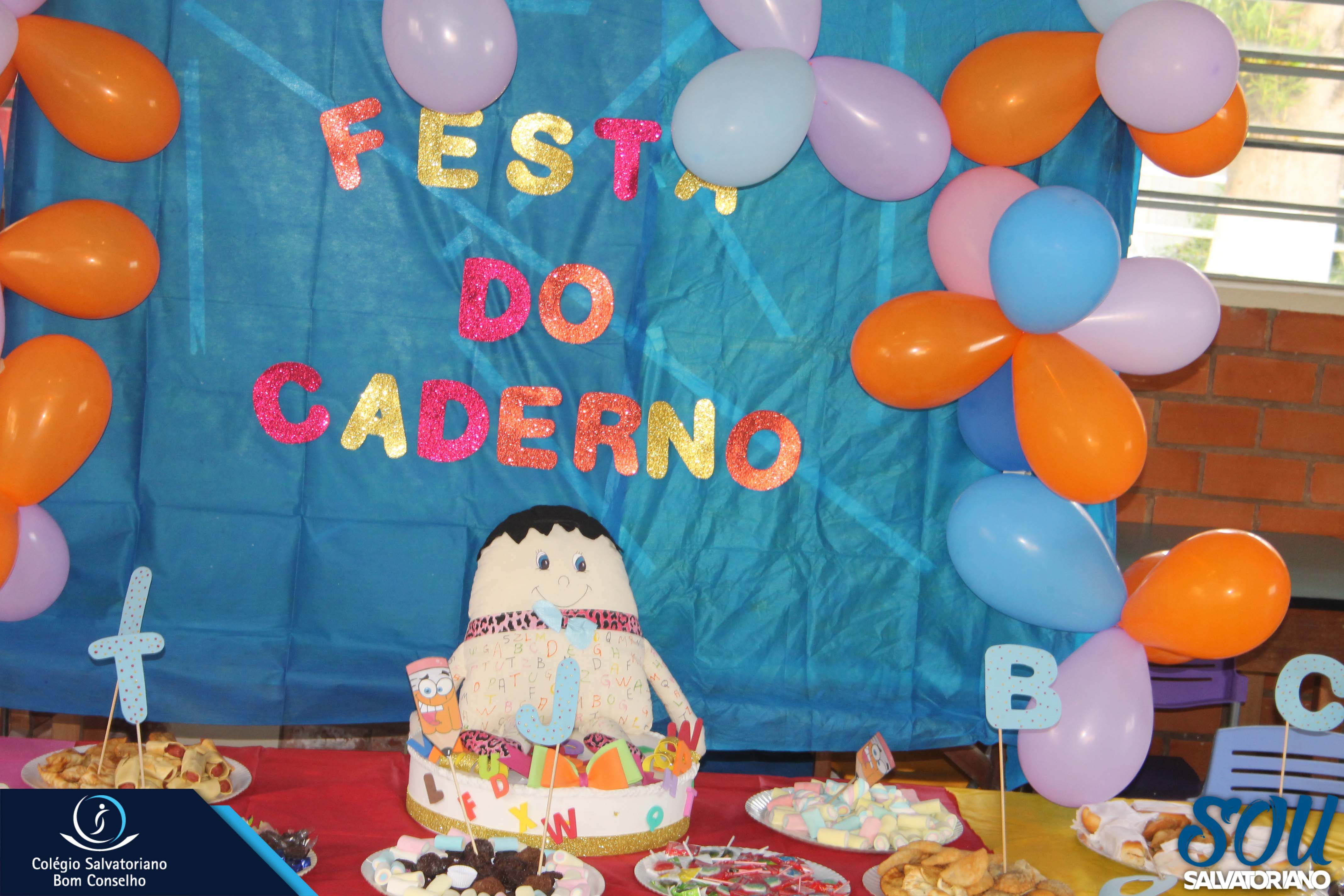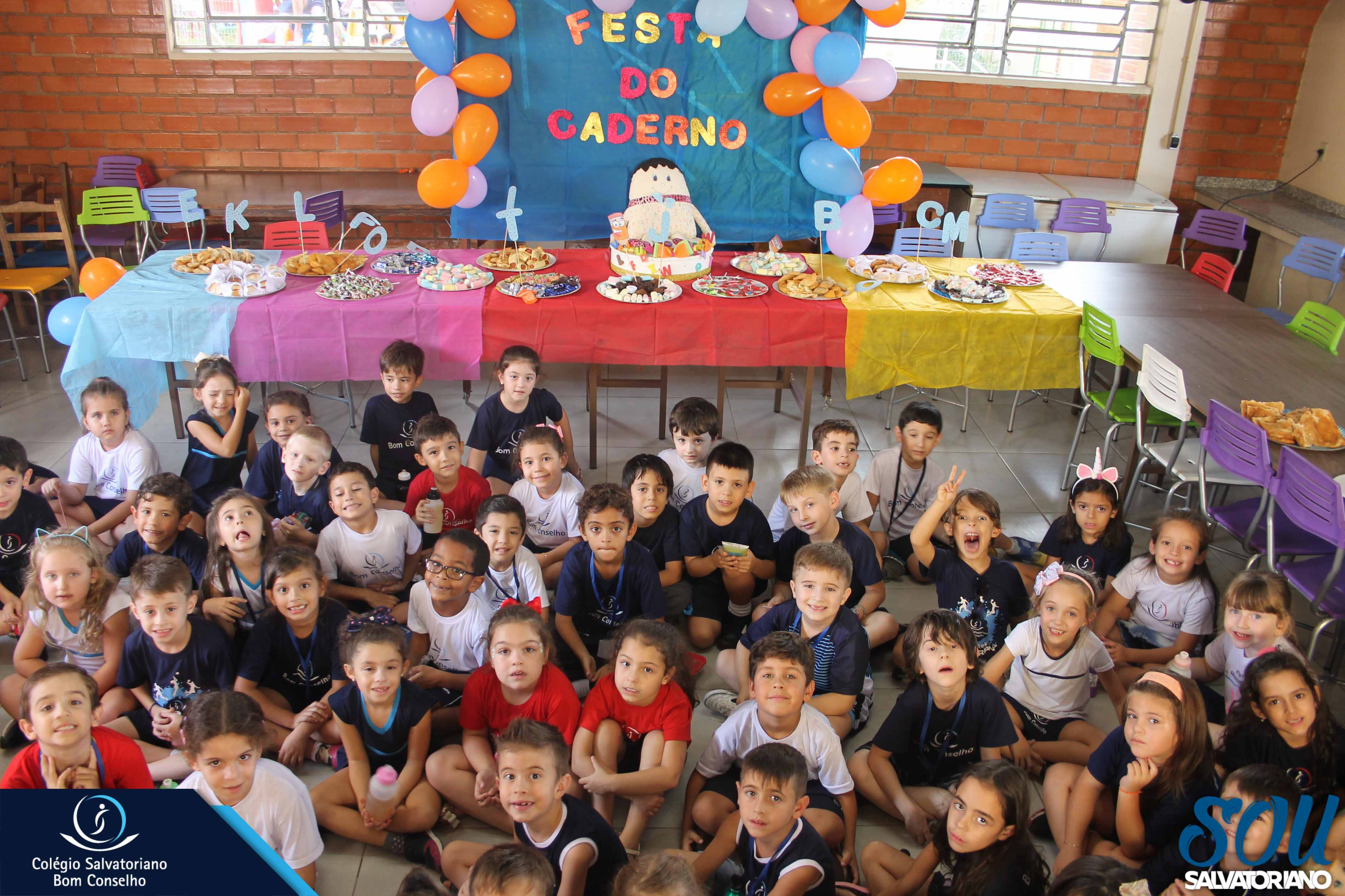 Também, depois do recreio, aconteceu no galpão da escola a festa do caderno, recheada de muitos lanches e guloseimas.