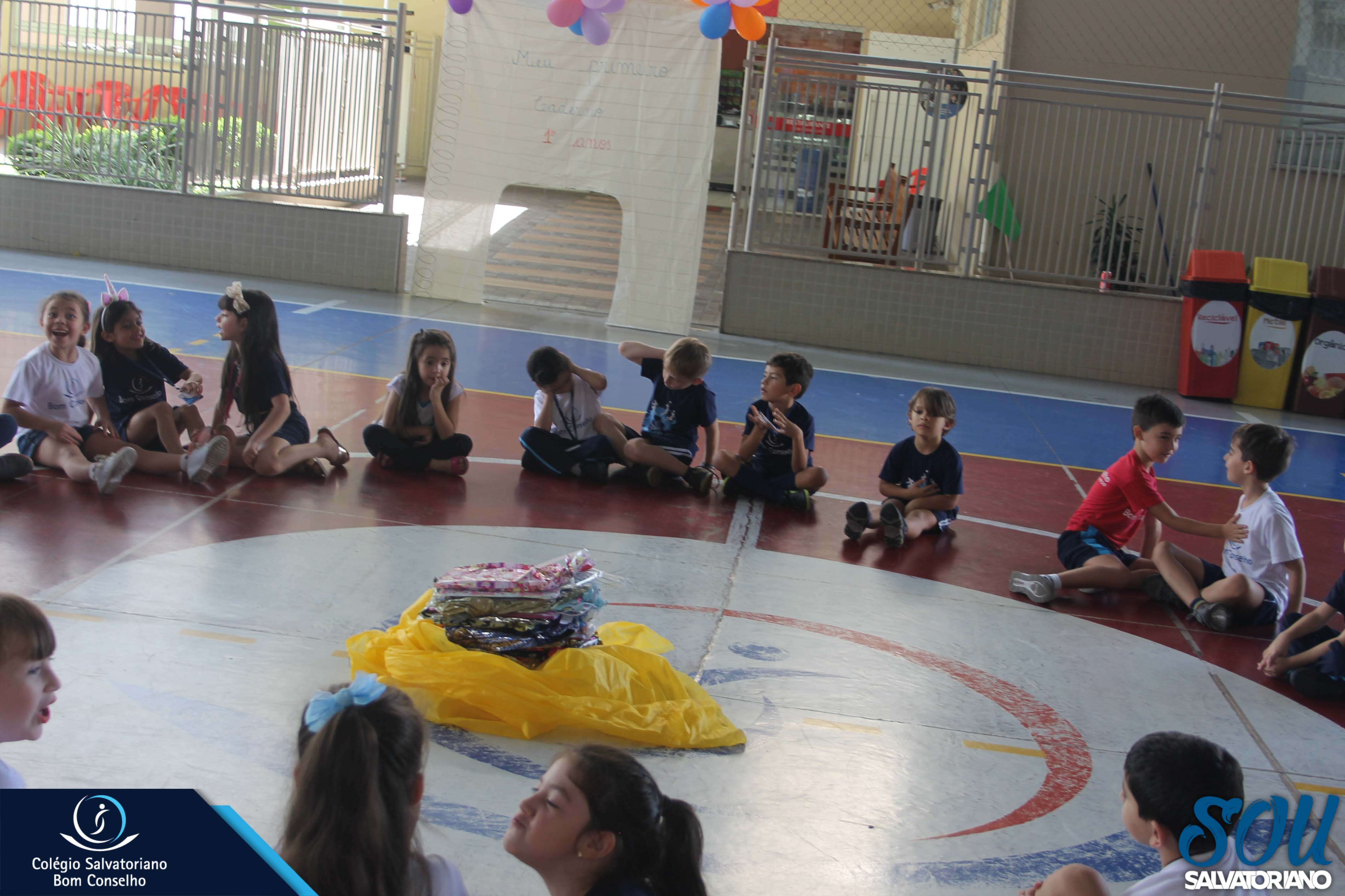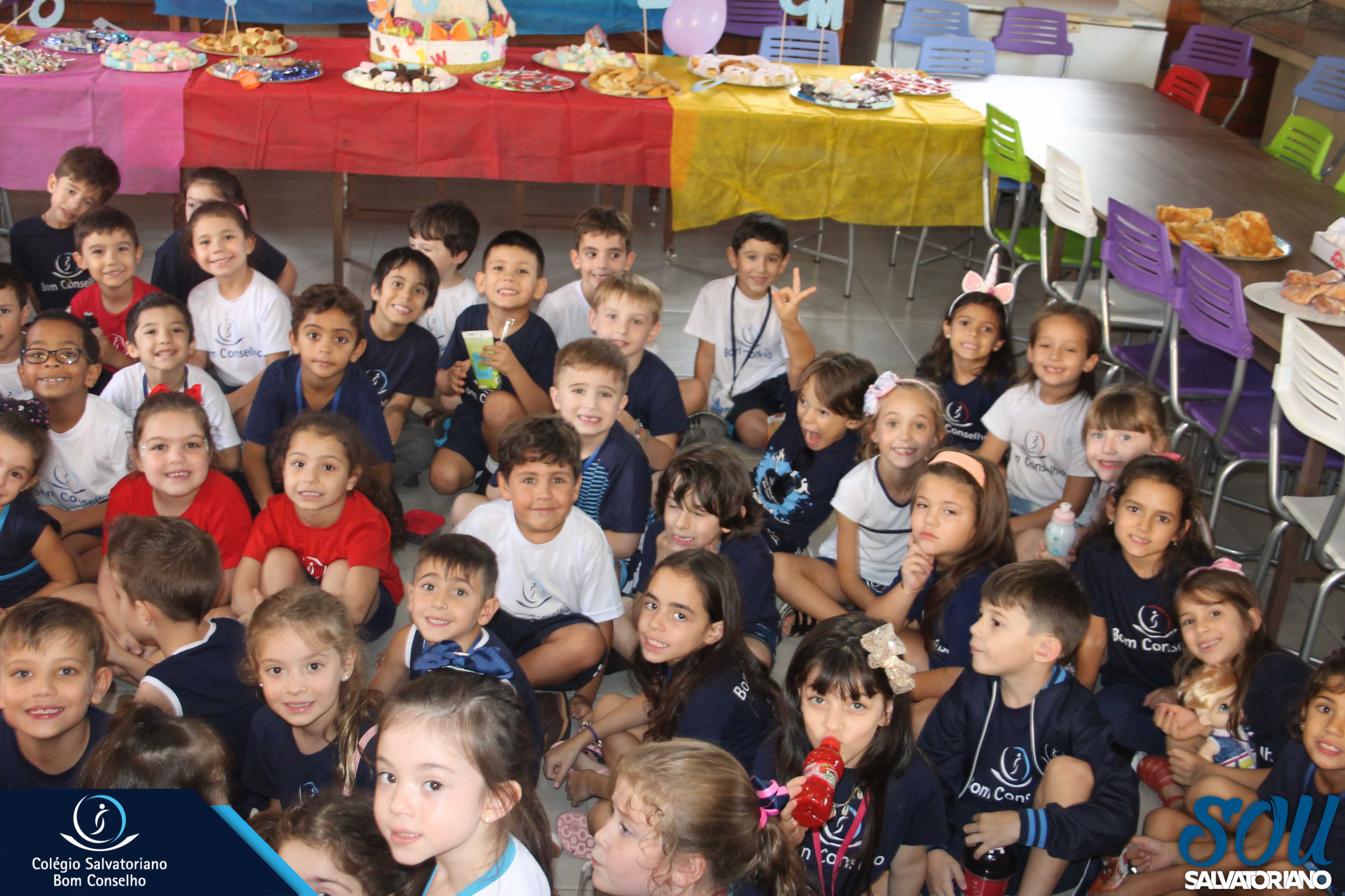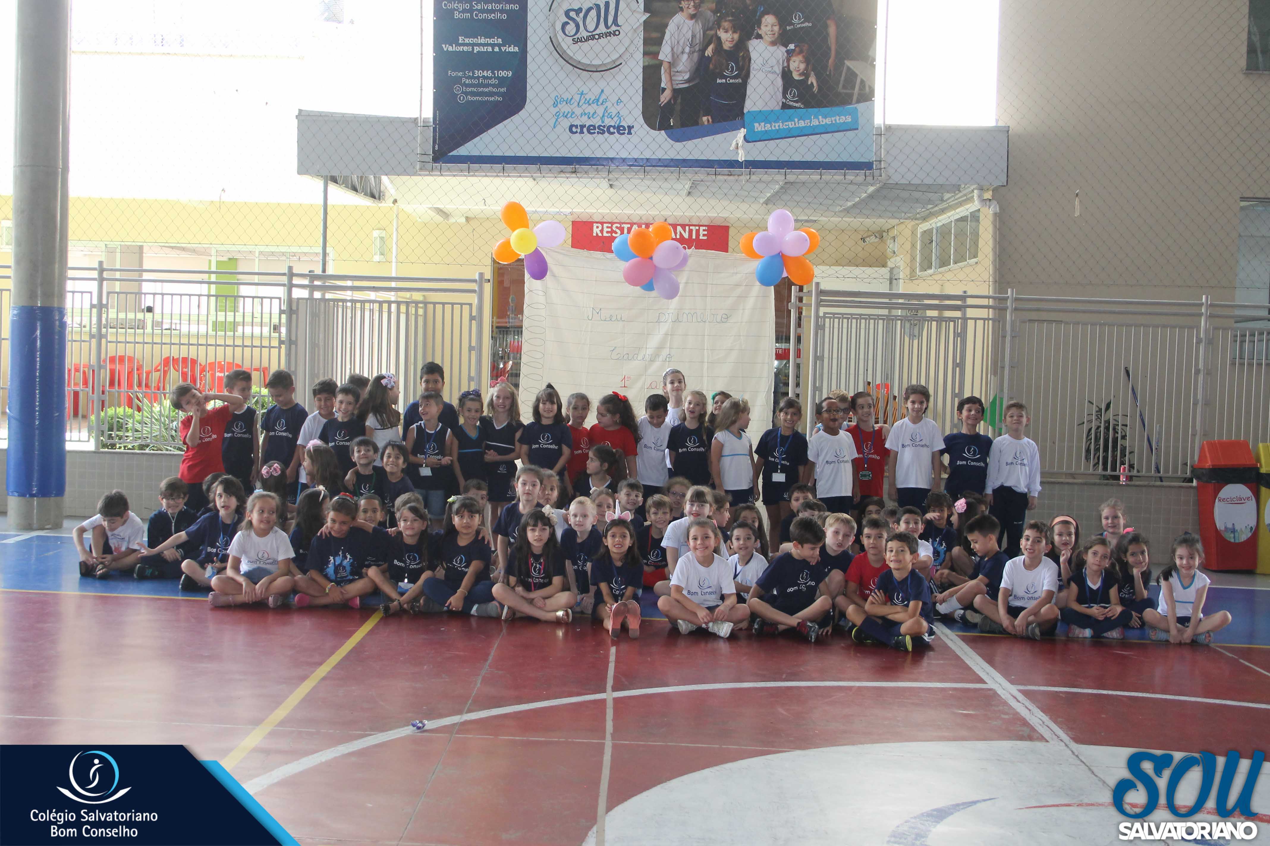 Também, depois do recreio, aconteceu no galpão da escola a festa do caderno, recheada de muitos lanches e guloseimas.