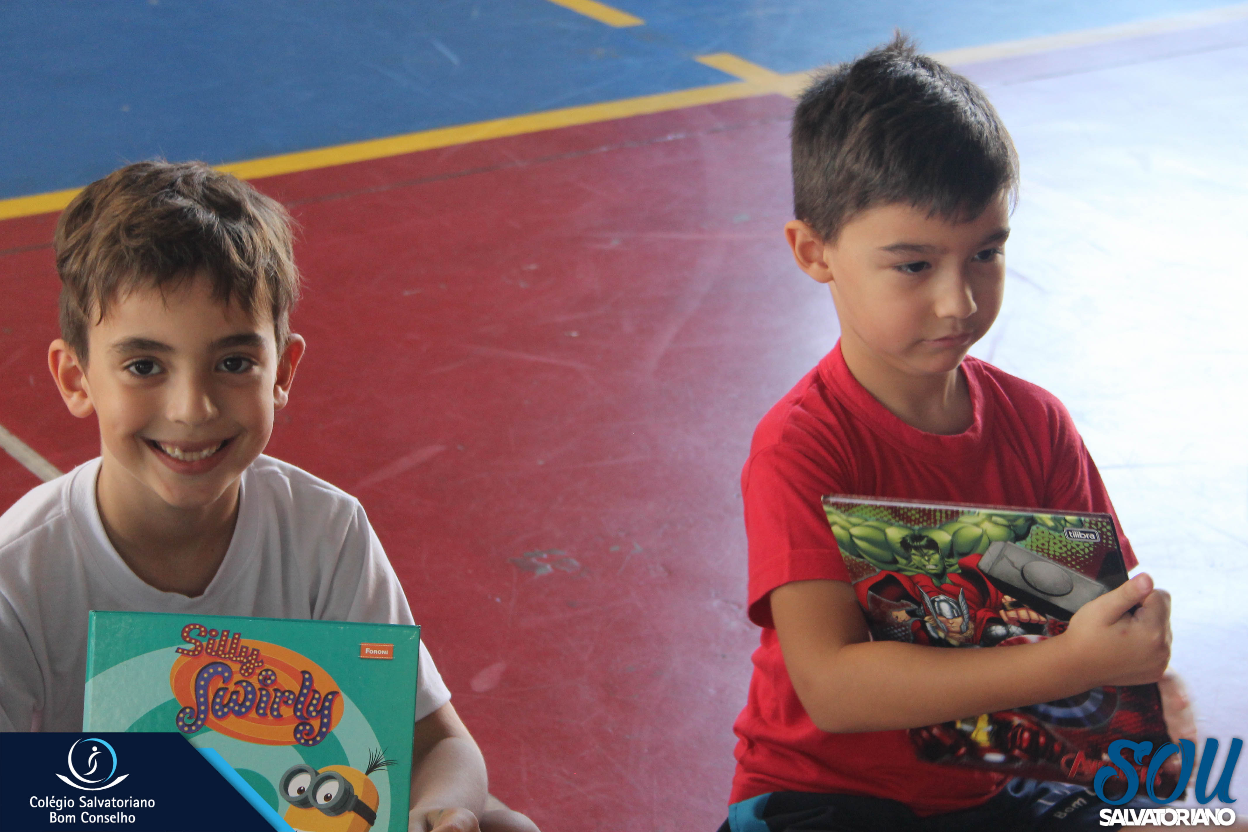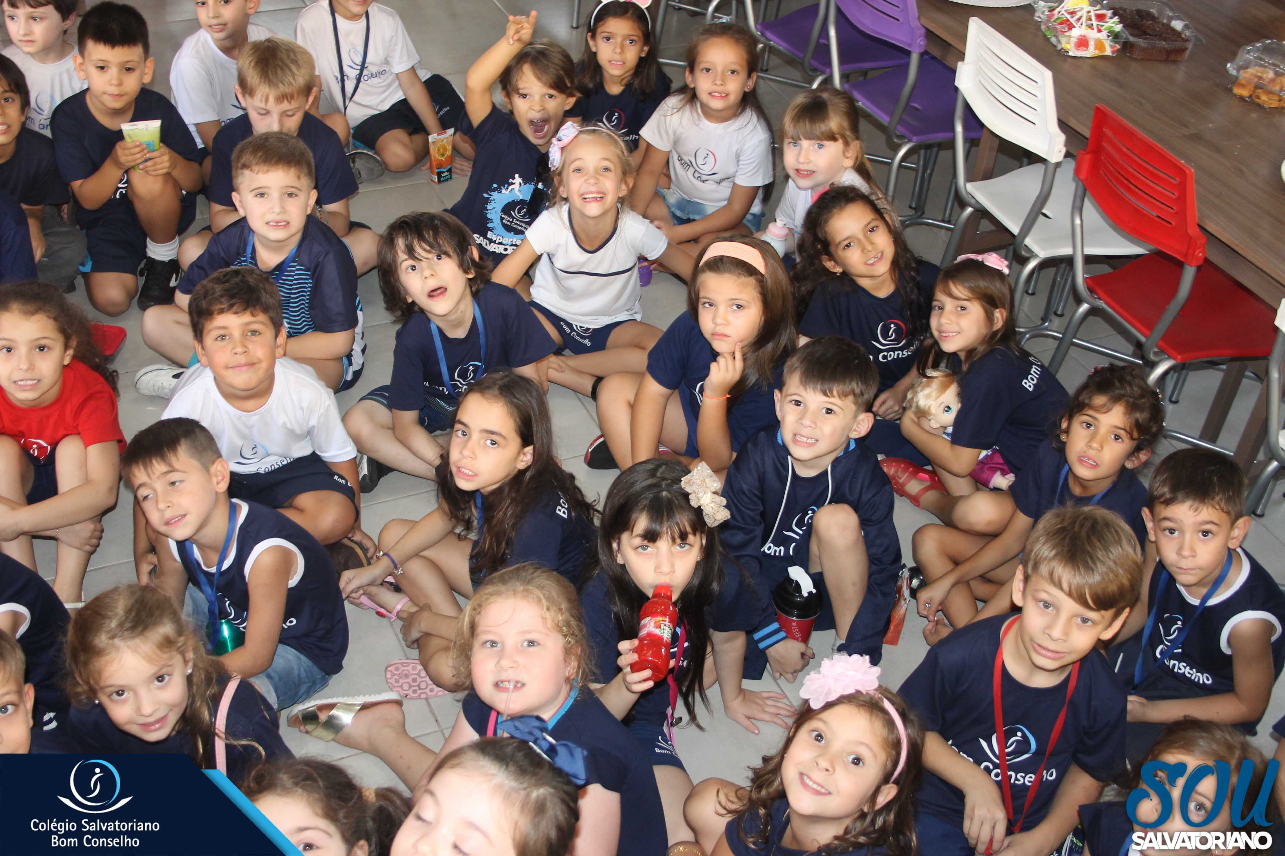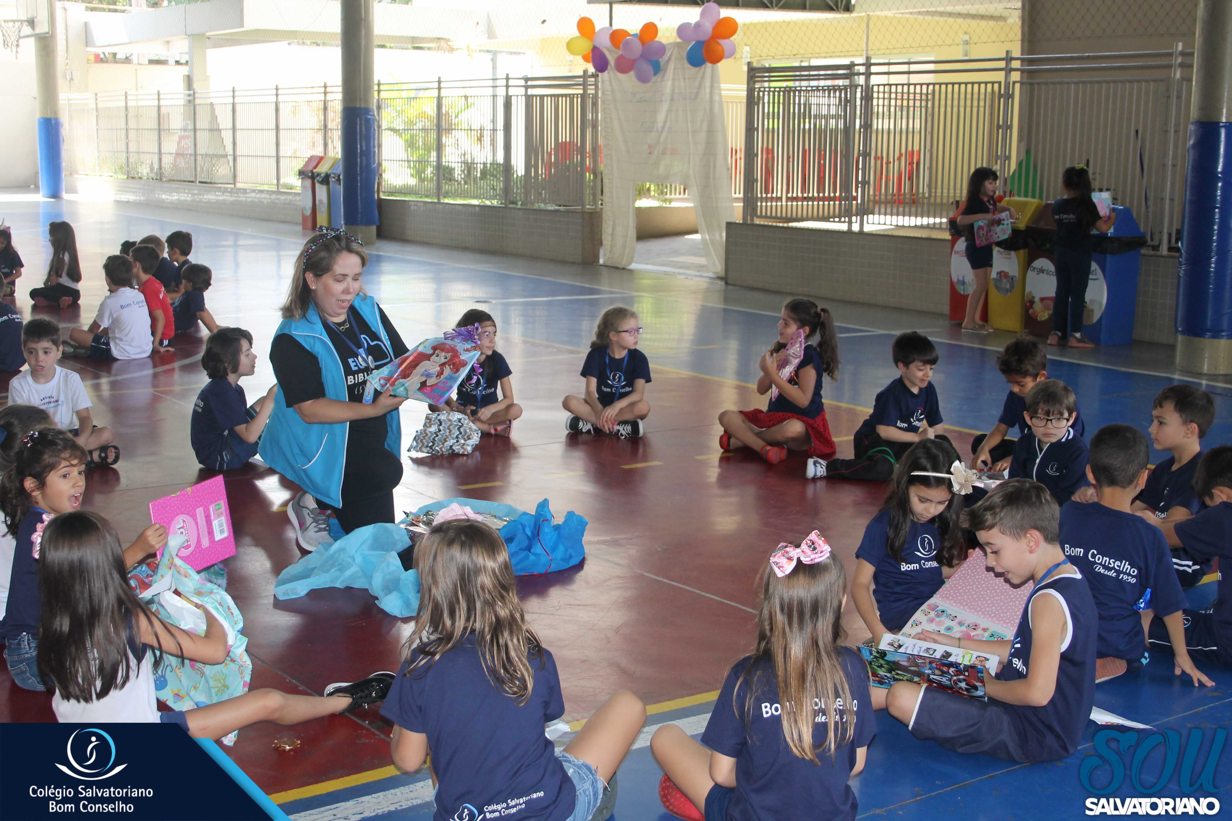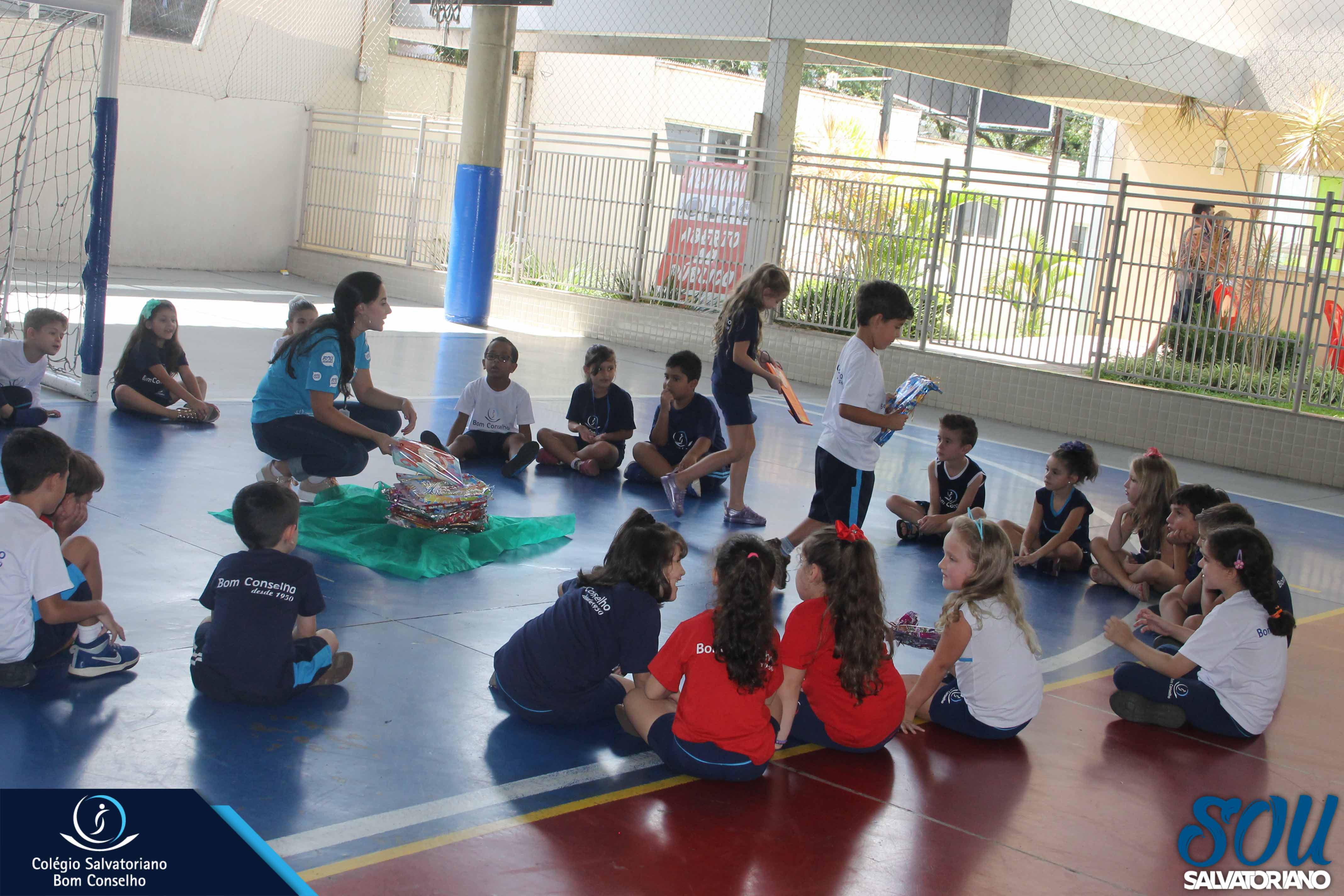 Também, depois do recreio, aconteceu no galpão da escola a festa do caderno, recheada de muitos lanches e guloseimas.