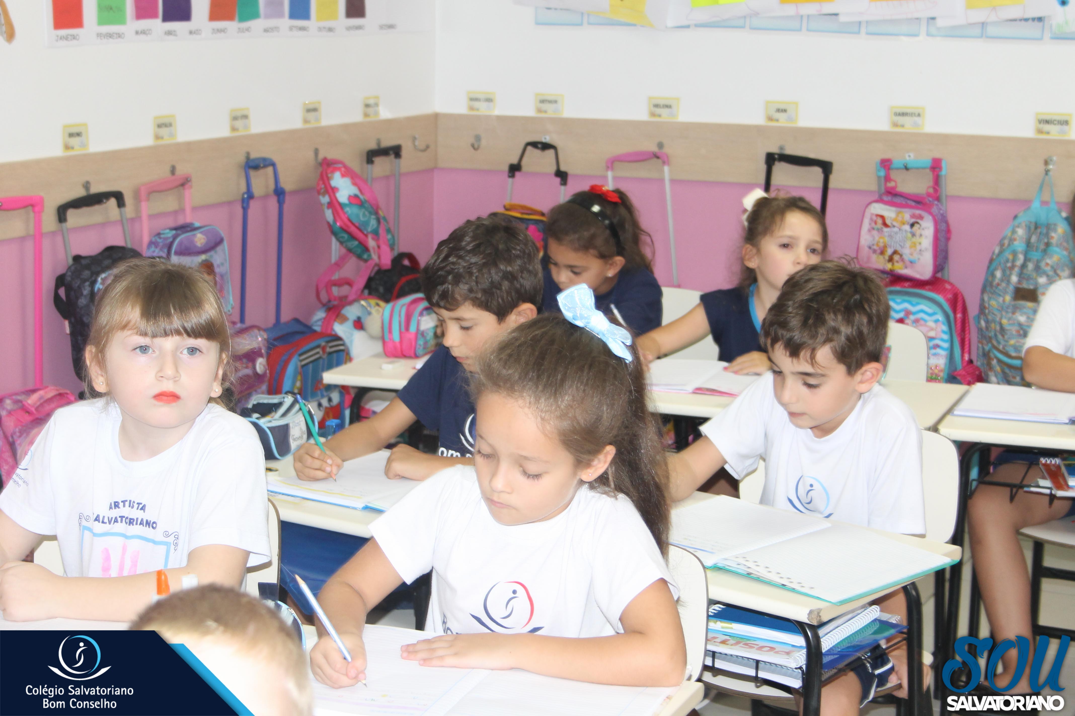 Para o início das atividades de rotina no caderno, as turmas do 1º ano do Ensino Fundamental I participaram de uma atividade lúdica cheia de encantamento. Foram utilizados recursos visuais e auditivos como vídeos e músicas sobre o tema abordado e o cuidado com o material a ser explorado.