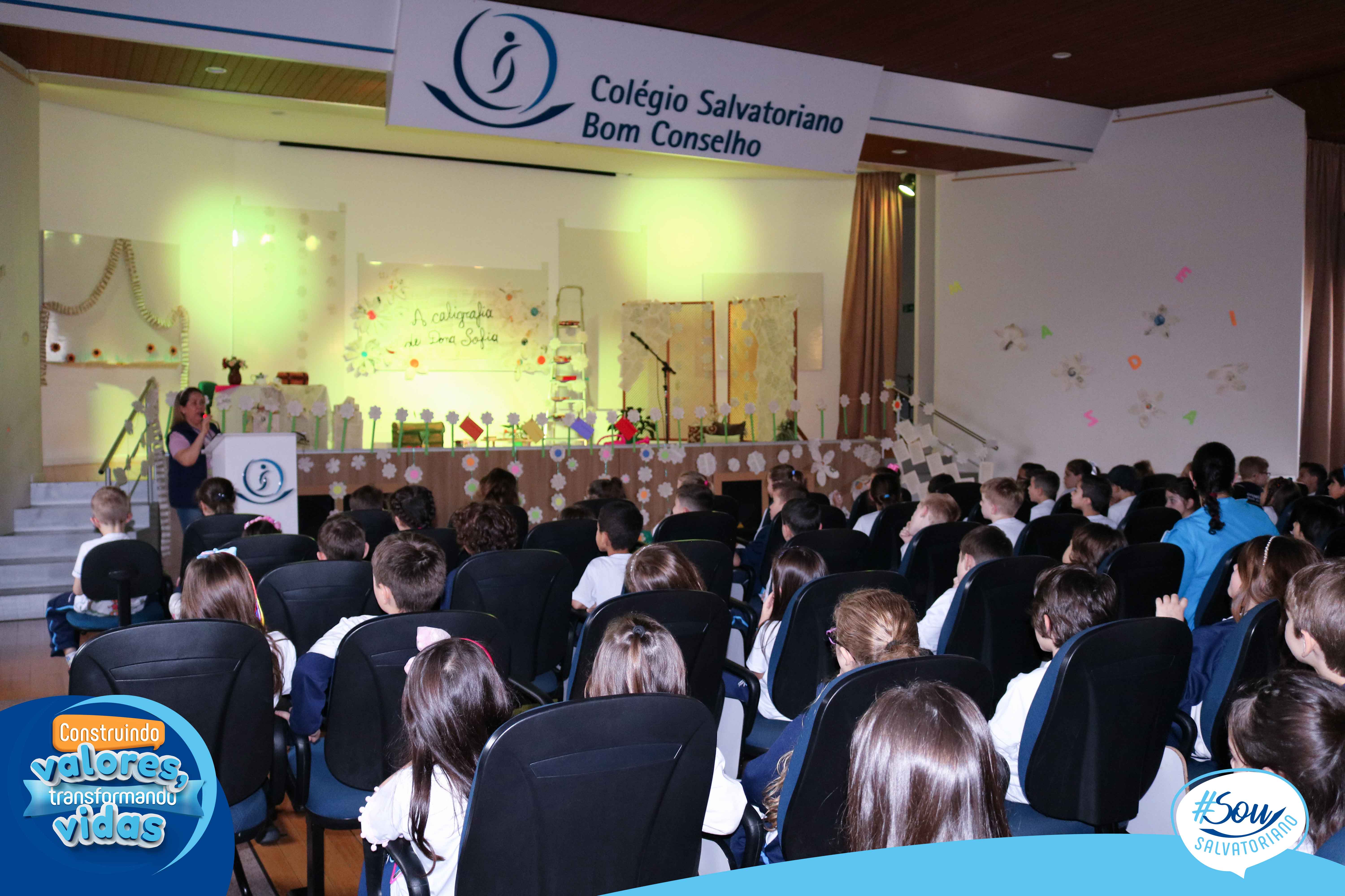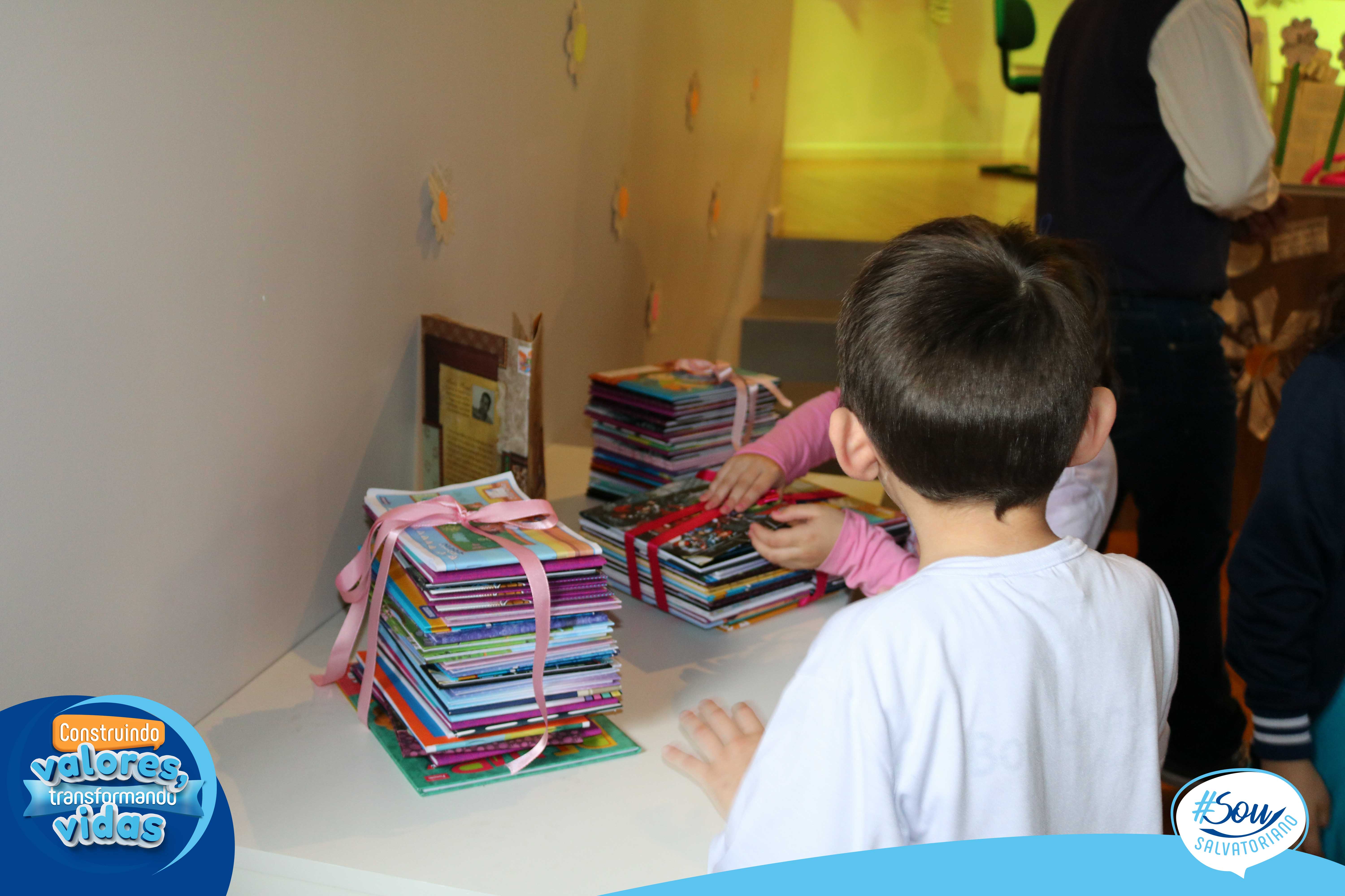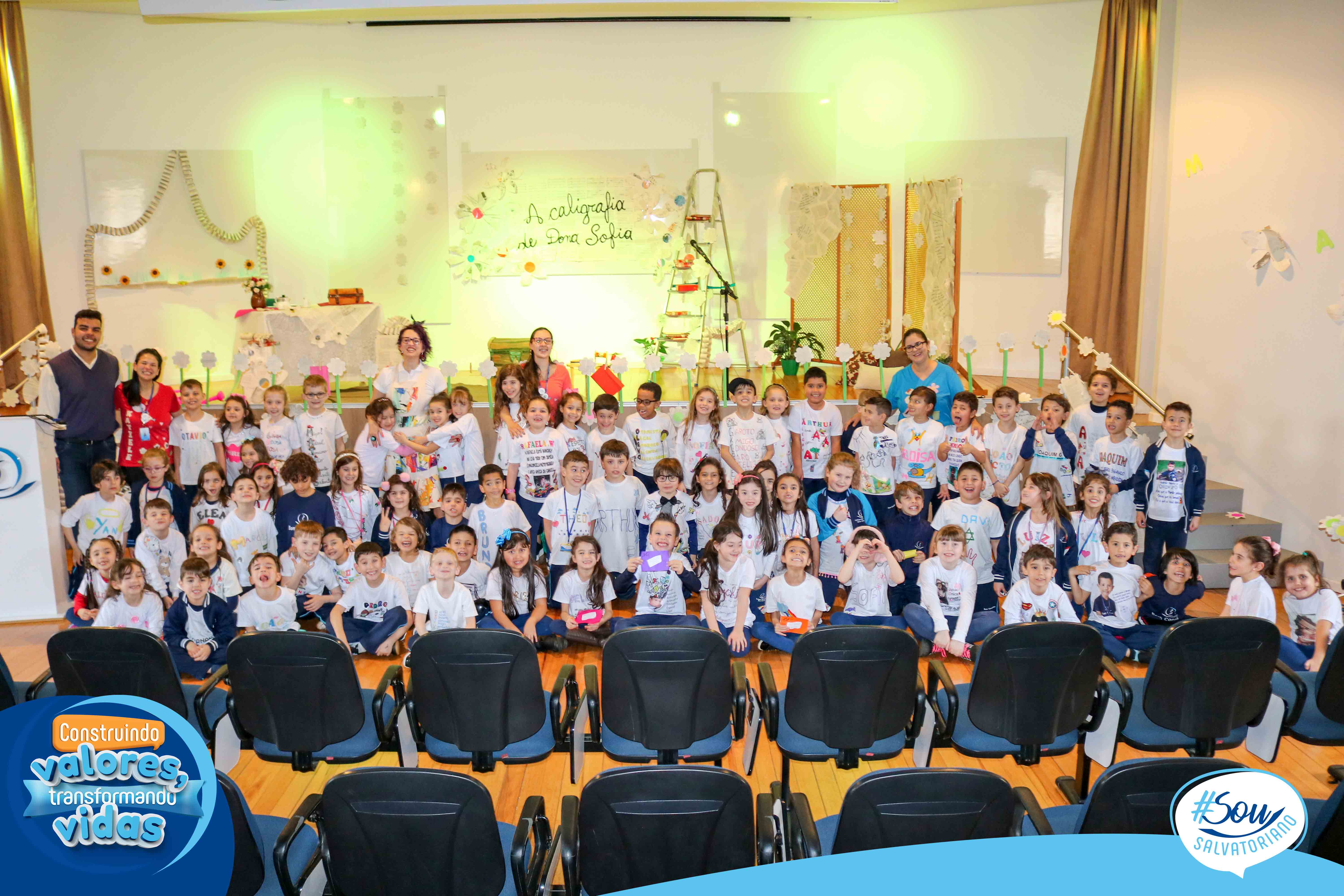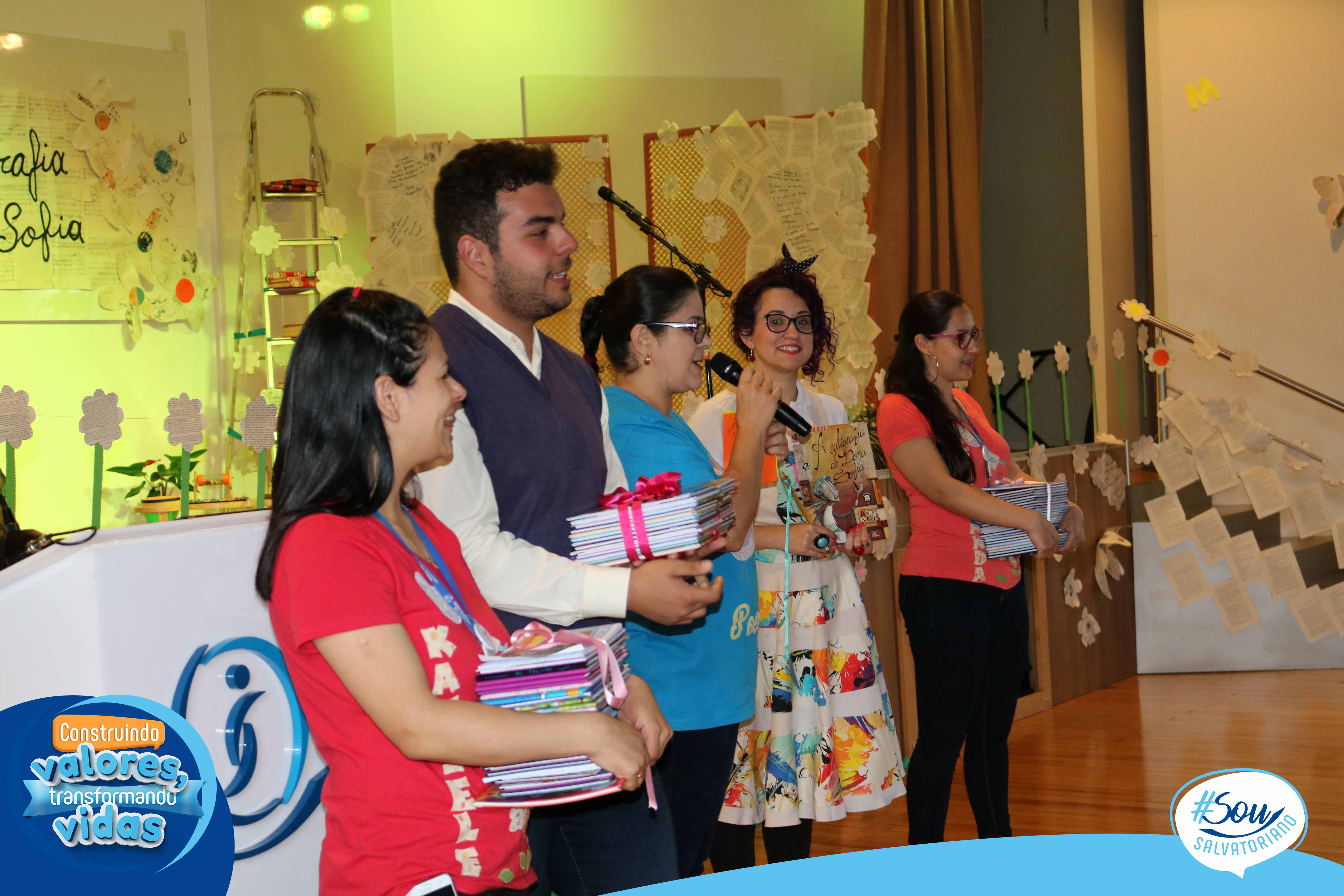 Nesta tarde literária, os estudantes receberam o livro “A caligrafia de Dona Sofia”, poesias, cartões-poéticos, marcador de página e caderno de caligrafia. O trabalho com este livro marca o início do processo de aprendizagem da letra cursiva a partir da bela e poética história, leitura e produção de poemas.