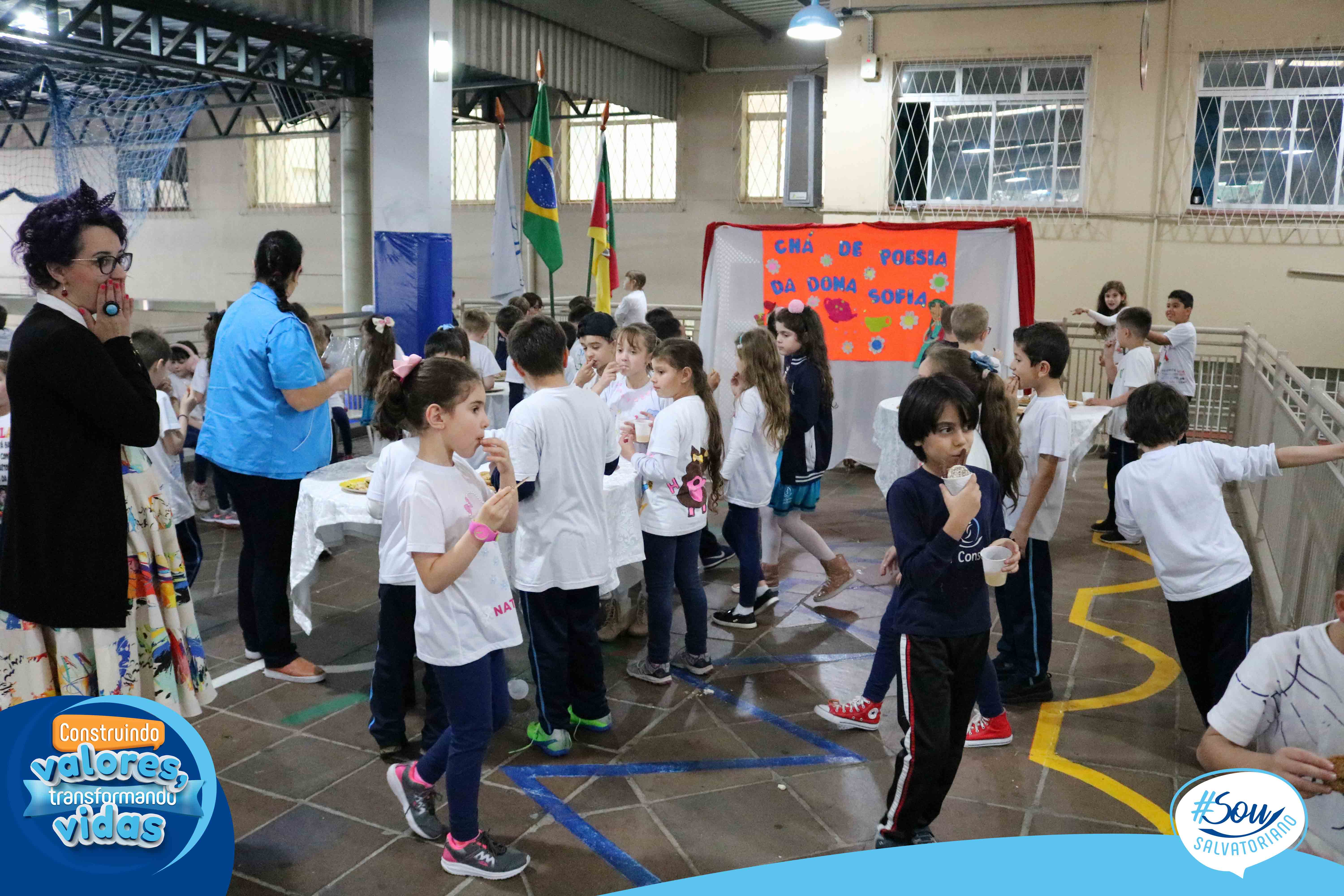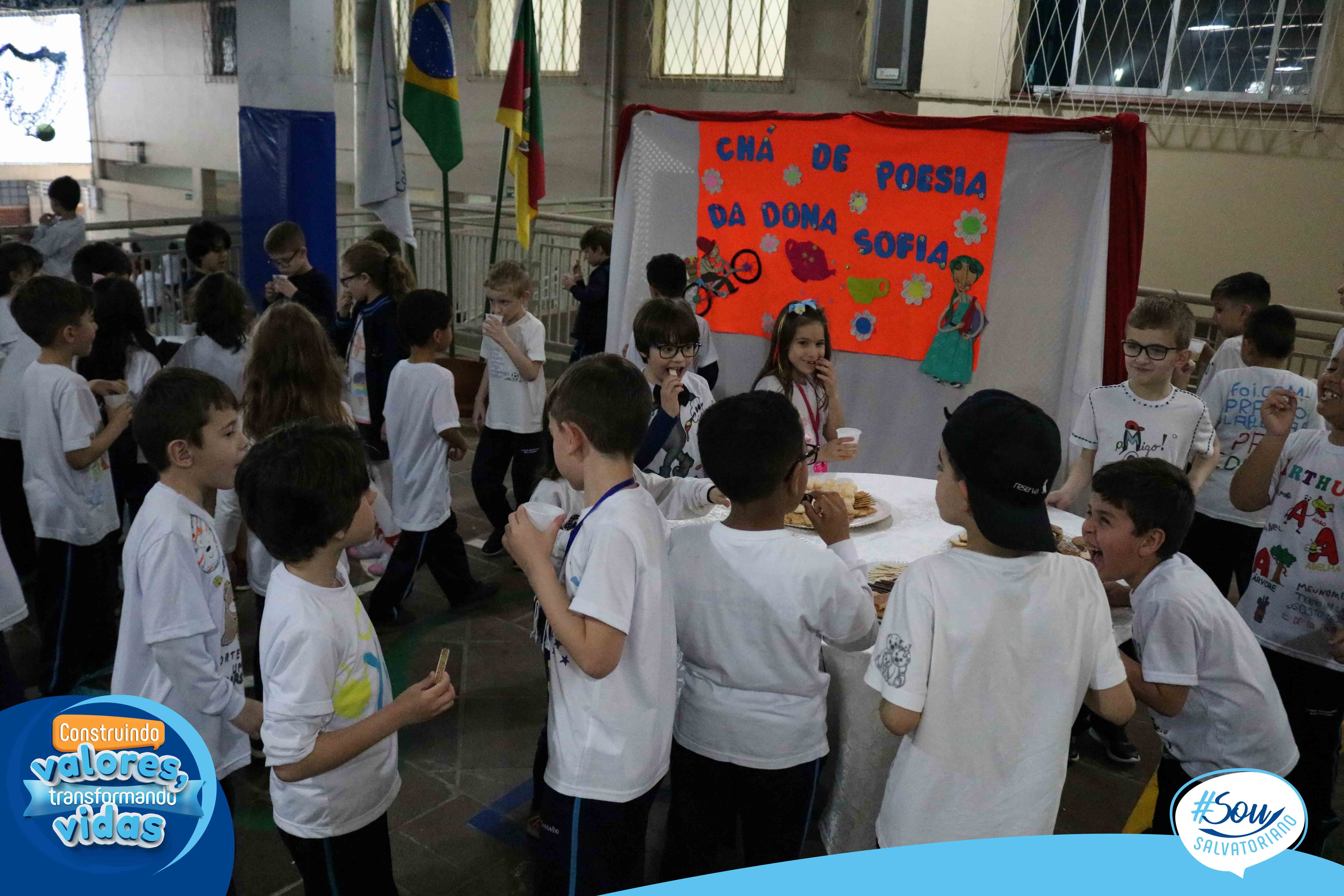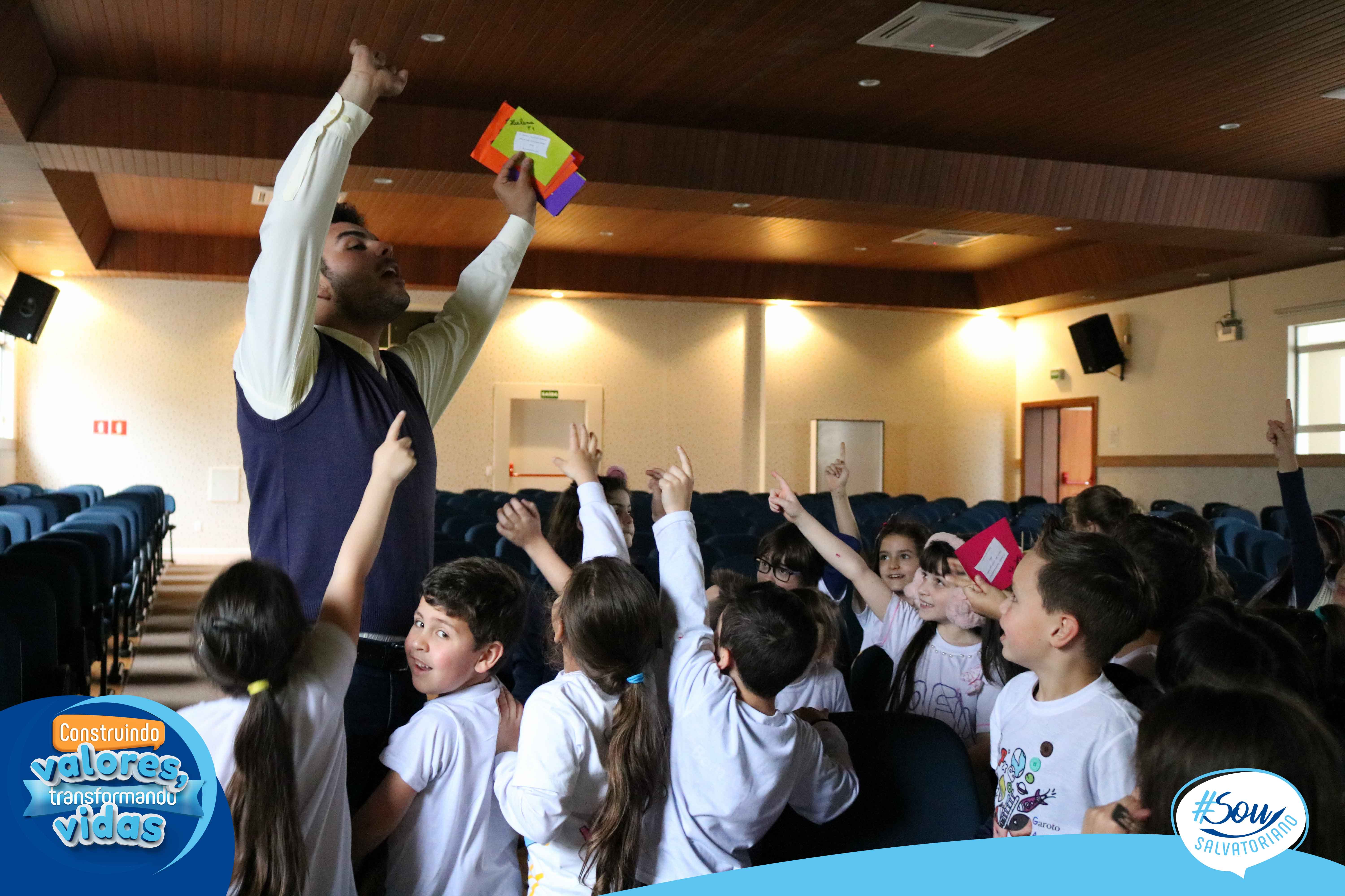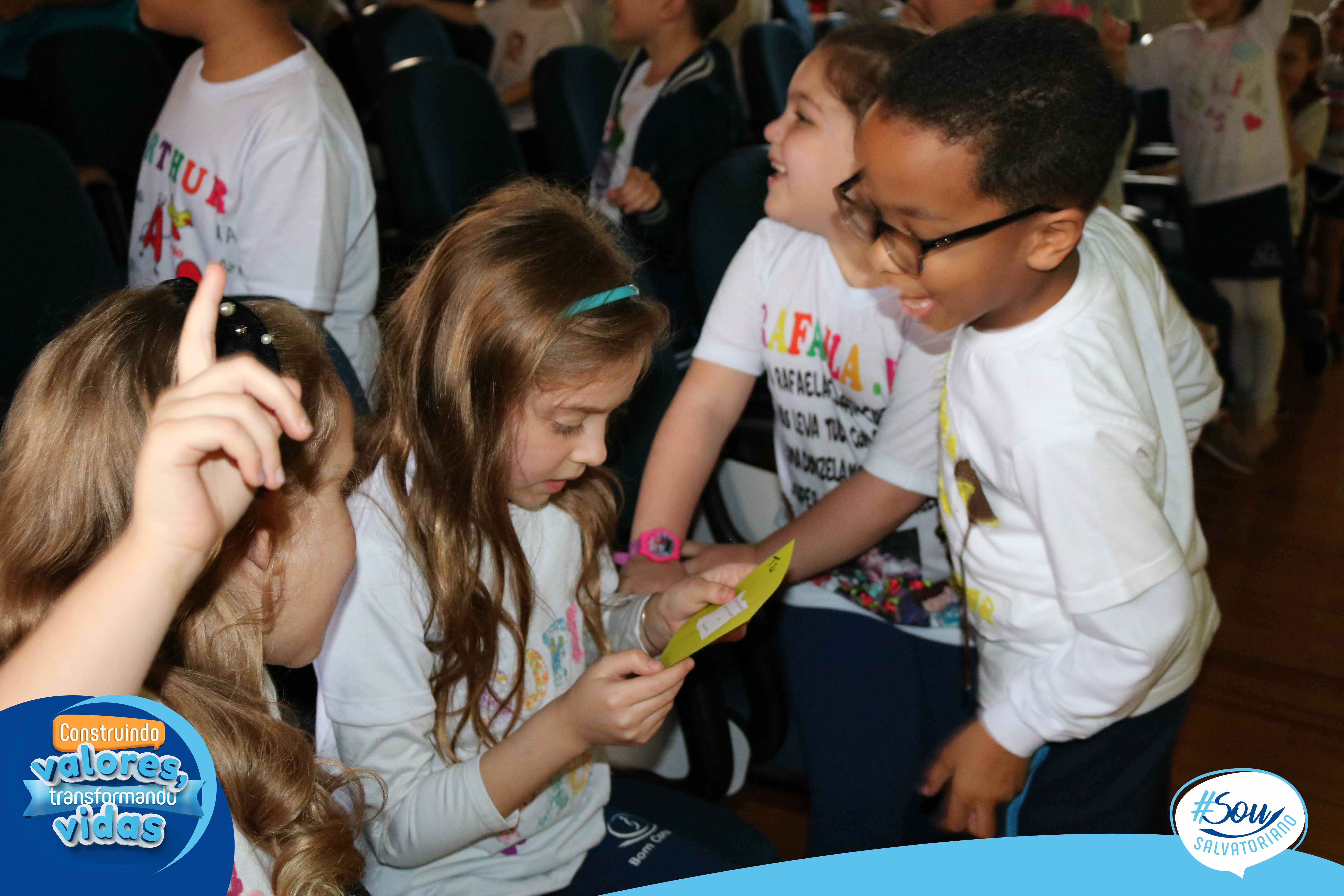 Nesta tarde literária, os estudantes receberam o livro “A caligrafia de Dona Sofia”, poesias, cartões-poéticos, marcador de página e caderno de caligrafia. O trabalho com este livro marca o início do processo de aprendizagem da letra cursiva a partir da bela e poética história, leitura e produção de poemas.