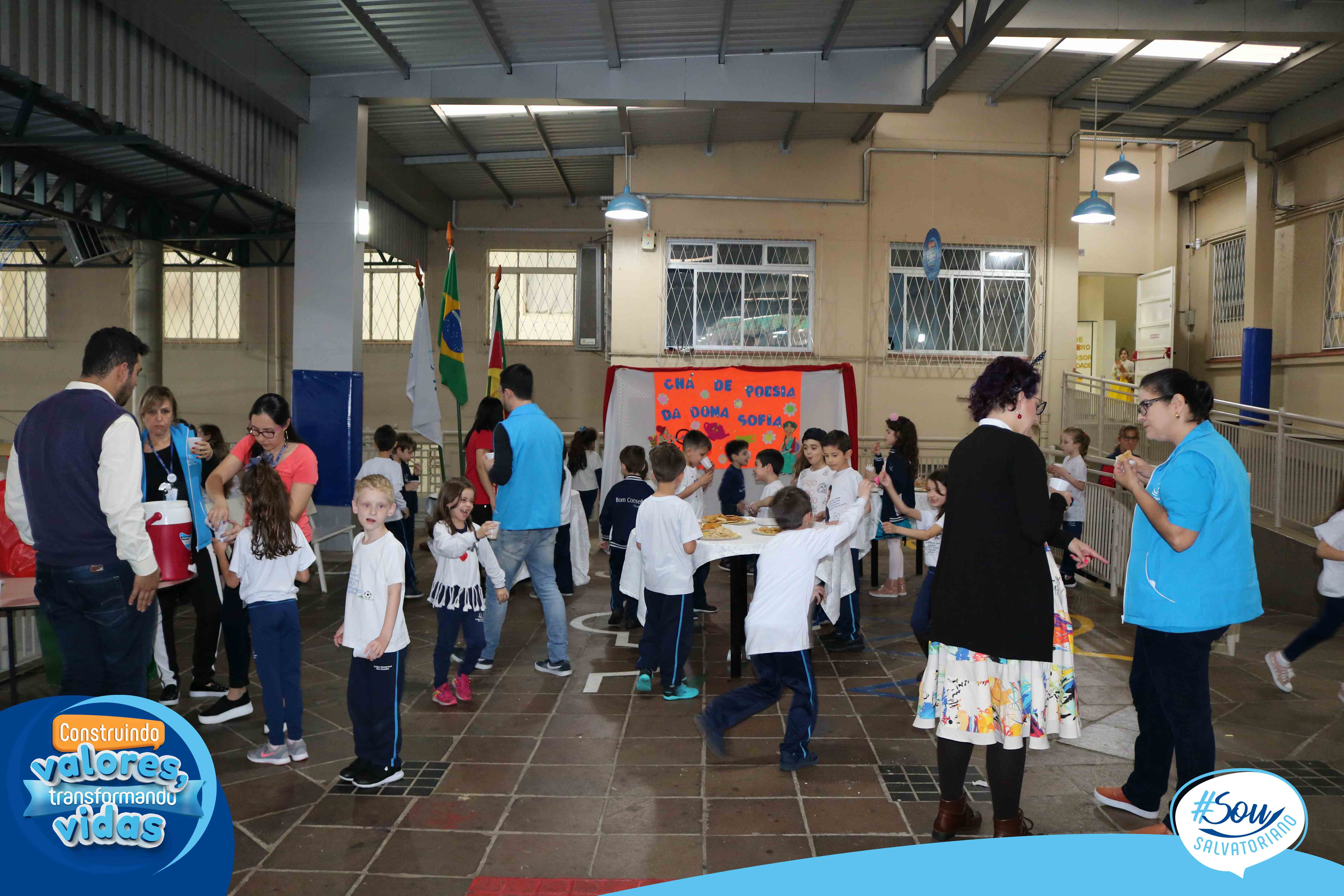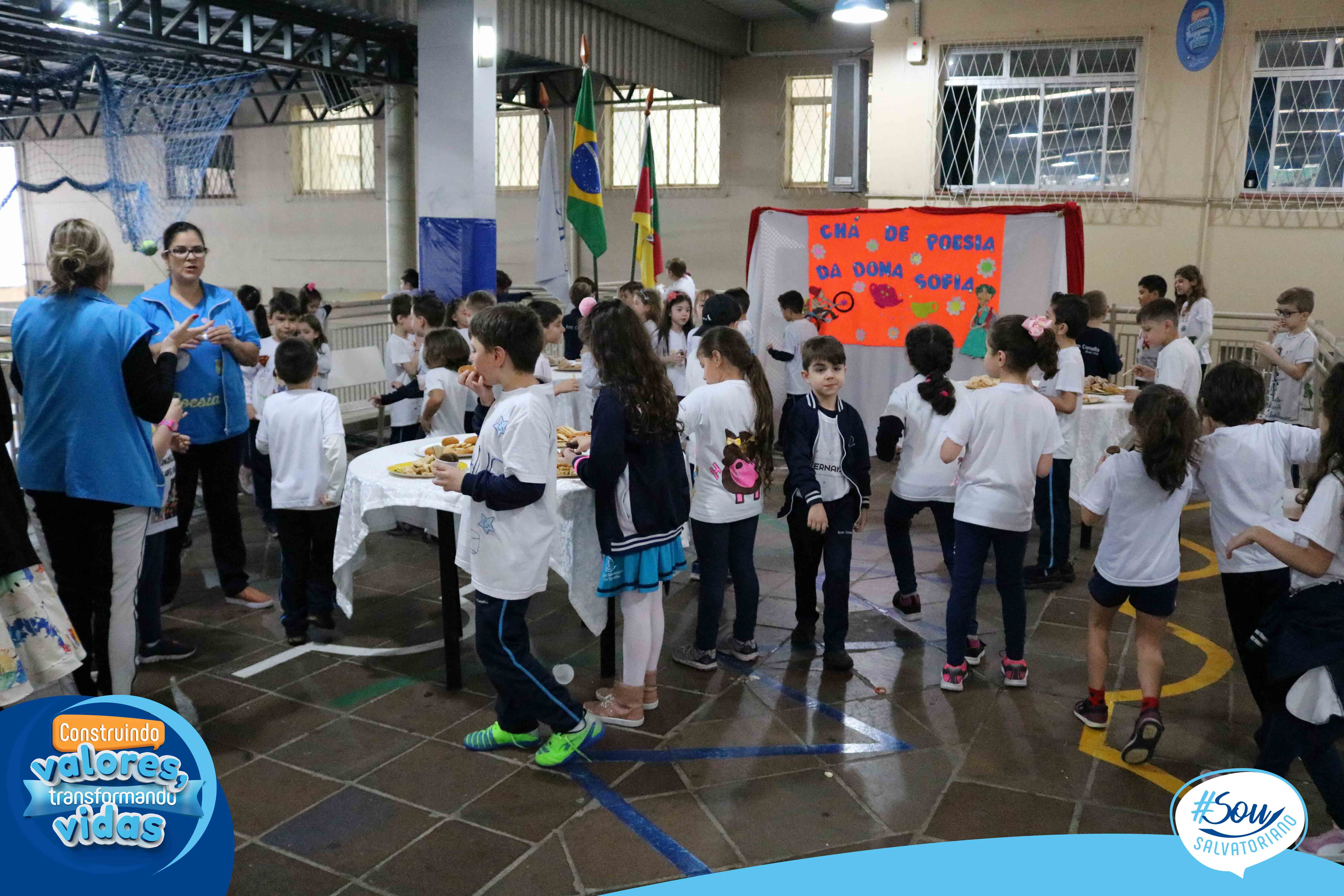 No final da atividade, os alunos receberam seus cadernos de caligrafia e participaram de um chá poético no pátio do colégio.