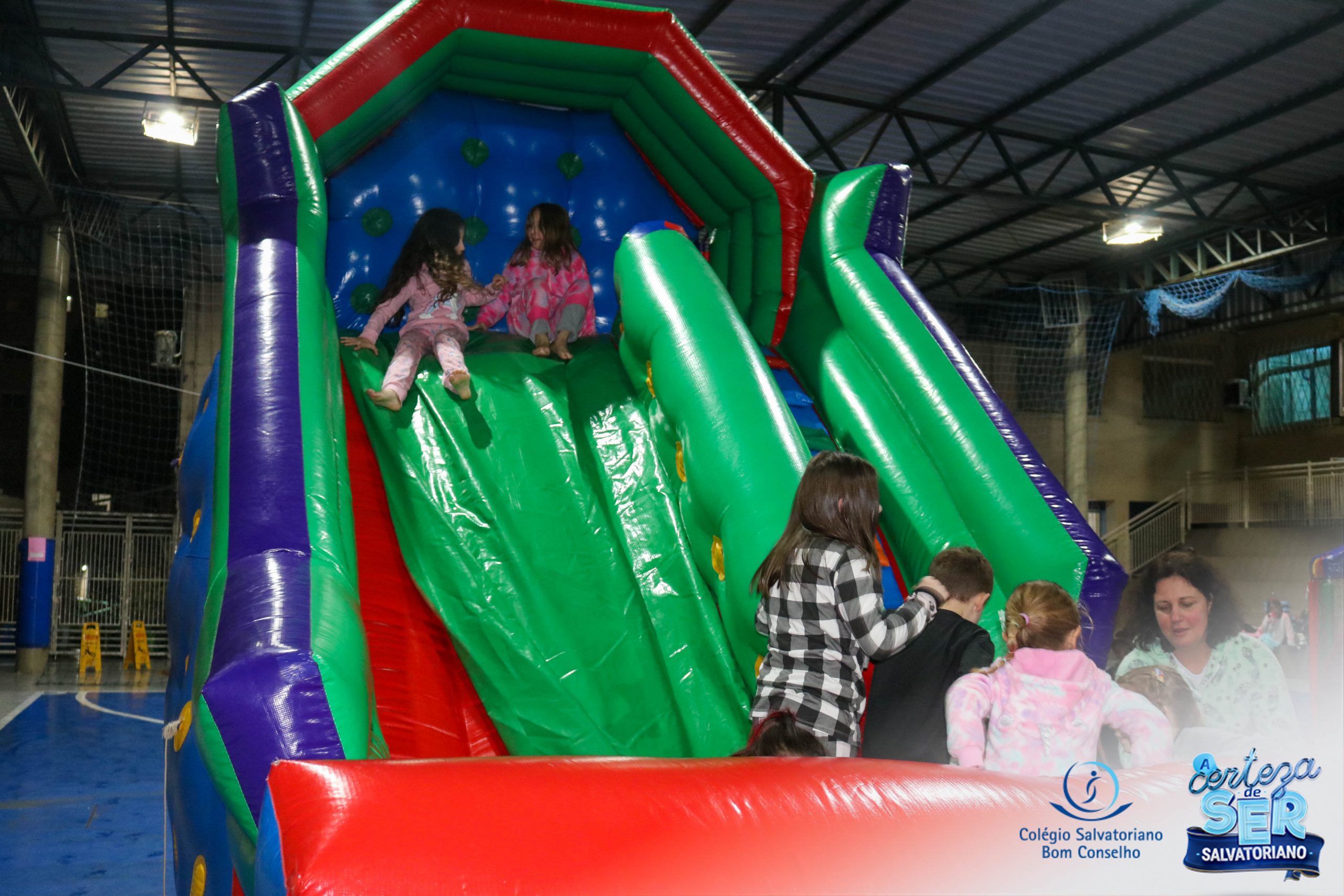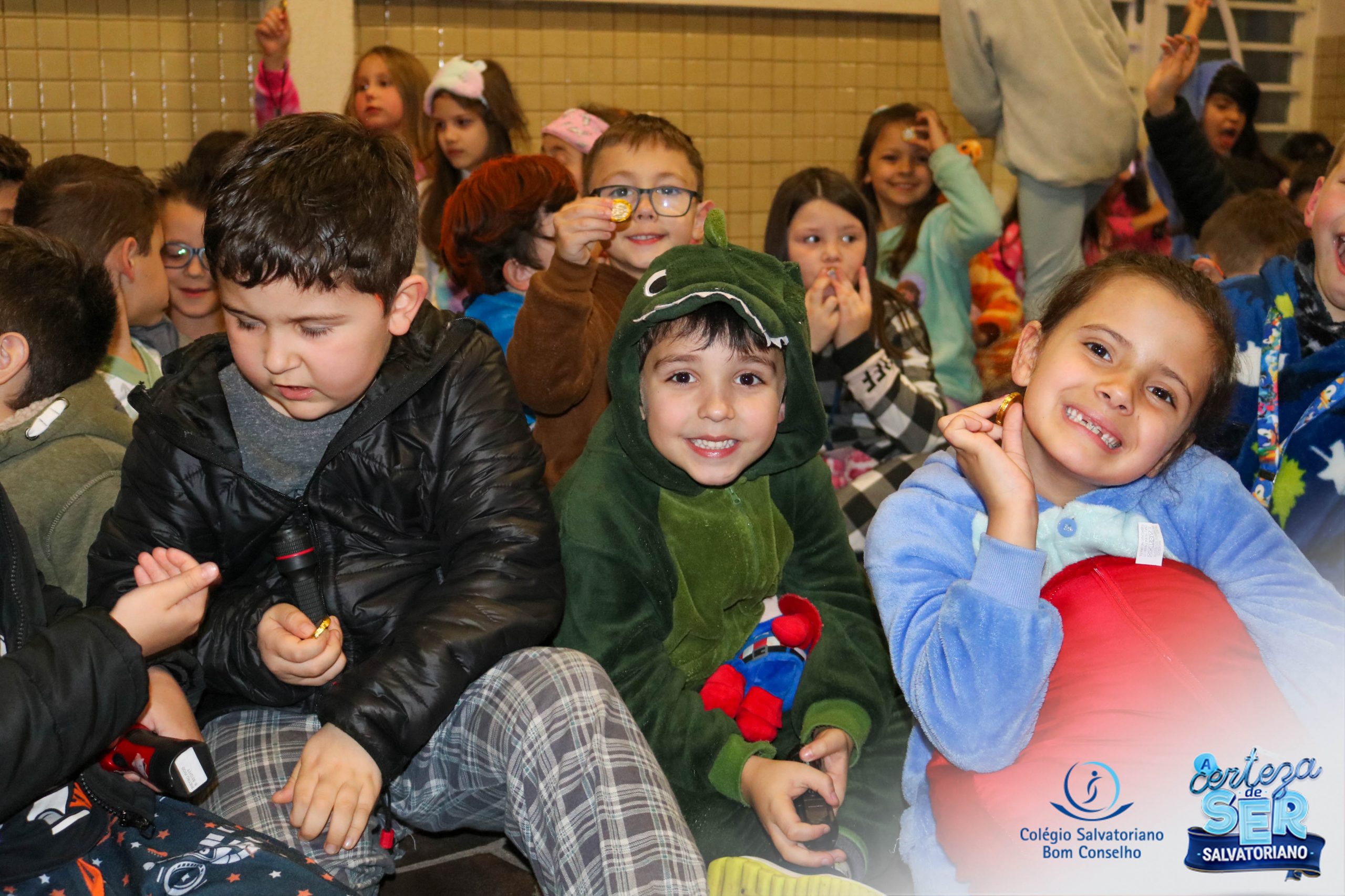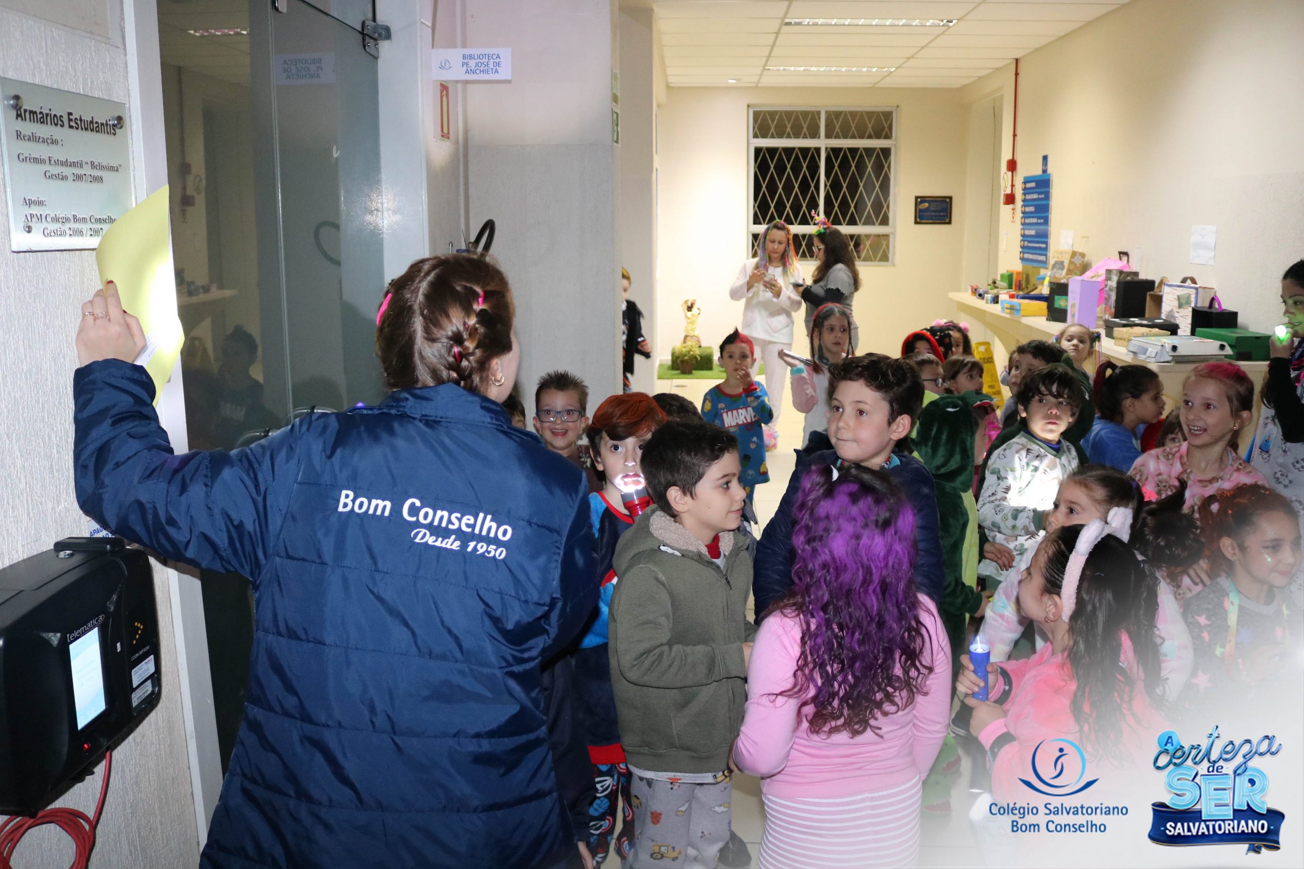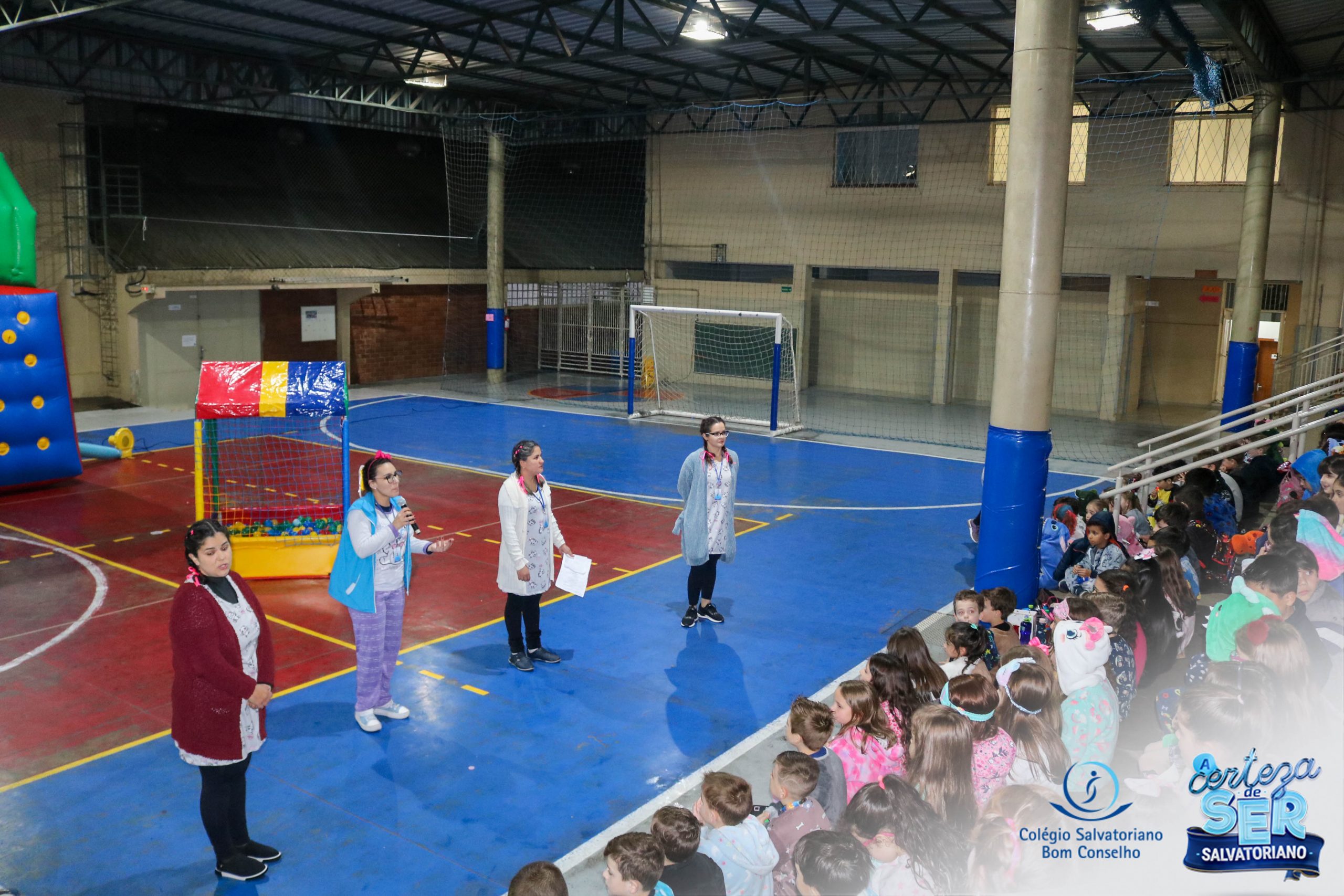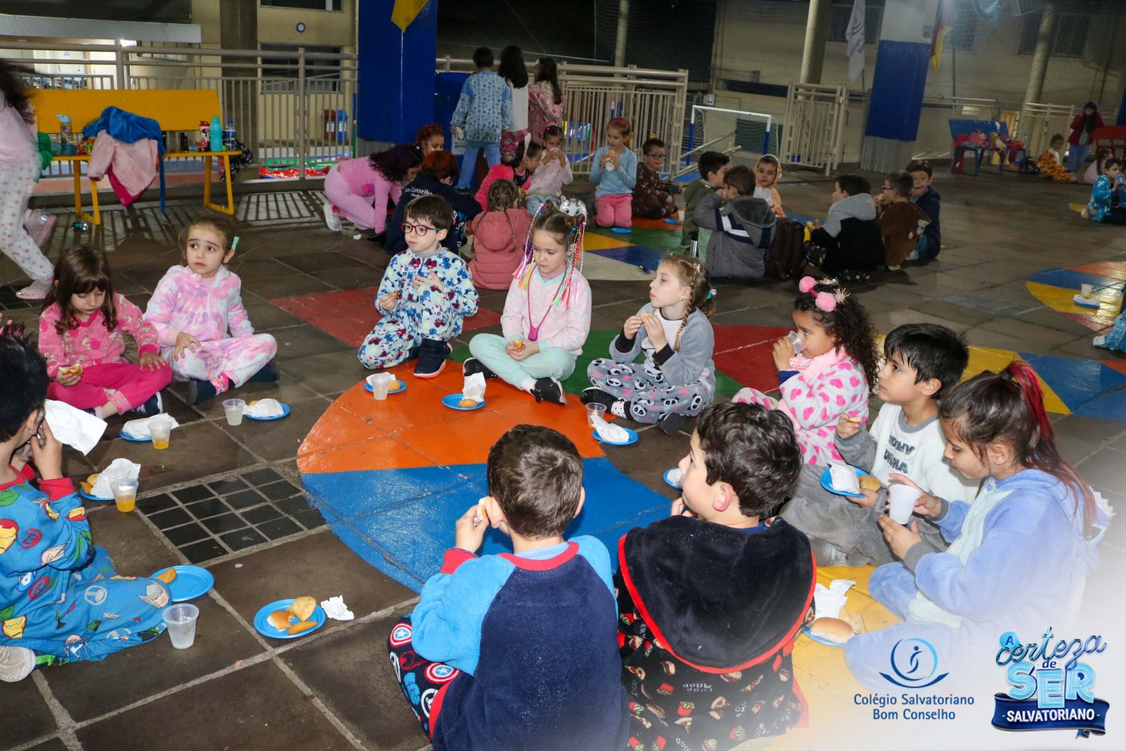 A Noite do Pijama 2022, aconteceu no colégio na última terça-feira, 11/10 das 19h às 21 horas e foi repleta de atividades super legais. Na chegada os estudantes foram acolhidos pelas professoras para o momento das fotos. Estudantes e professores vestiram-se com seus pijamas coloridos e animados. A primeira atividade foi uma caça ao tesouro. Seguindo as pistas as turmas desvendaram os enigmas com suas lanternas que iluminavam os espaços da escola. Após, os estudantes organizados em grupos participaram da Zumba Kids e brincaram nos brinquedos infláveis na quadra da escola. Para encerrar, todos participaram do jantar na escola!