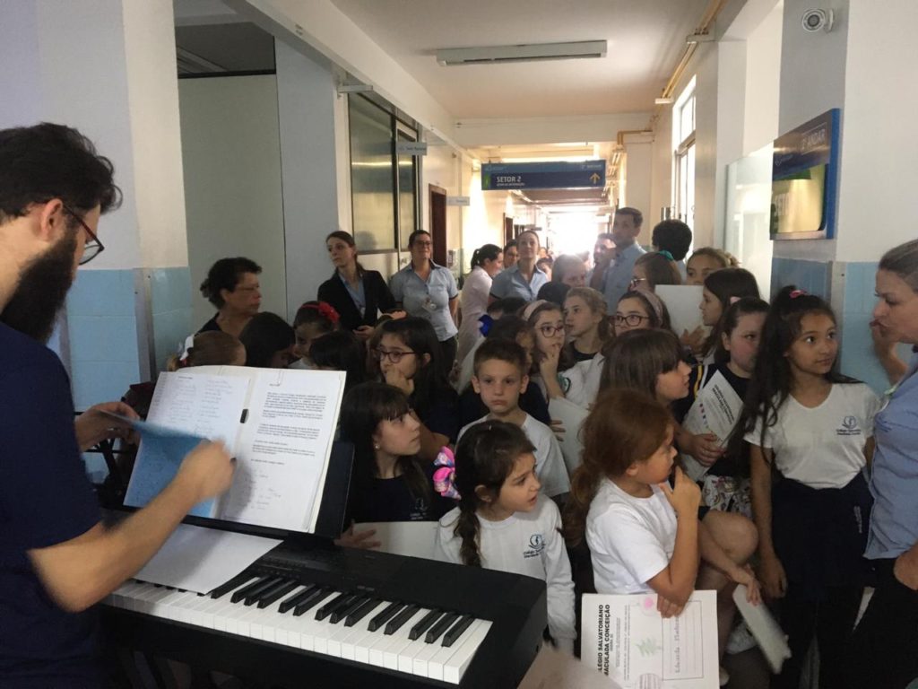 No último dia 04/12, recebemos no HSDS o coral das crianças do CSIC – Colégio Salvatoriano Imaculada Conceição com intuito de trazer “Na alegria ou na dor, nossa força é o amor”. Foi uma tarde contagiante e emocionante.