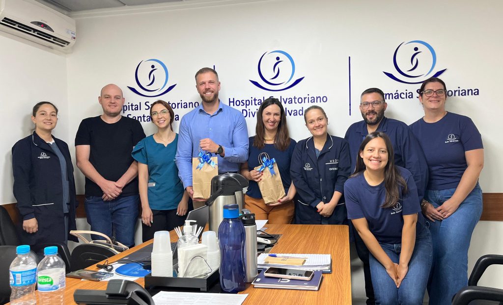 Nesta quarta-feira, 29 de janeiro, o Hospital Salvatoriano Divino Salvador recebeu a visita de representantes do Hospital Moinhos de Vento, da capital Porto Alegre, Rio Grande do Sul. O hospital gaúcho integra o projeto Proadi-SUS – Higiene em Suas Mãos, que reúne seis hospitais de referência no Brasil: Hospital Alemão Oswaldo Cruz, BP – A Beneficência Portuguesa de São Paulo, HCor, Hospital Israelita Albert Einstein, Hospital Moinhos de Vento e Hospital Sírio-Libanês. Essas instituições prestam consultoria especializada e oferecem treinamentos voltados ao controle de infecções hospitalares, especialmente em Unidades de Terapia Intensiva (UTIs).