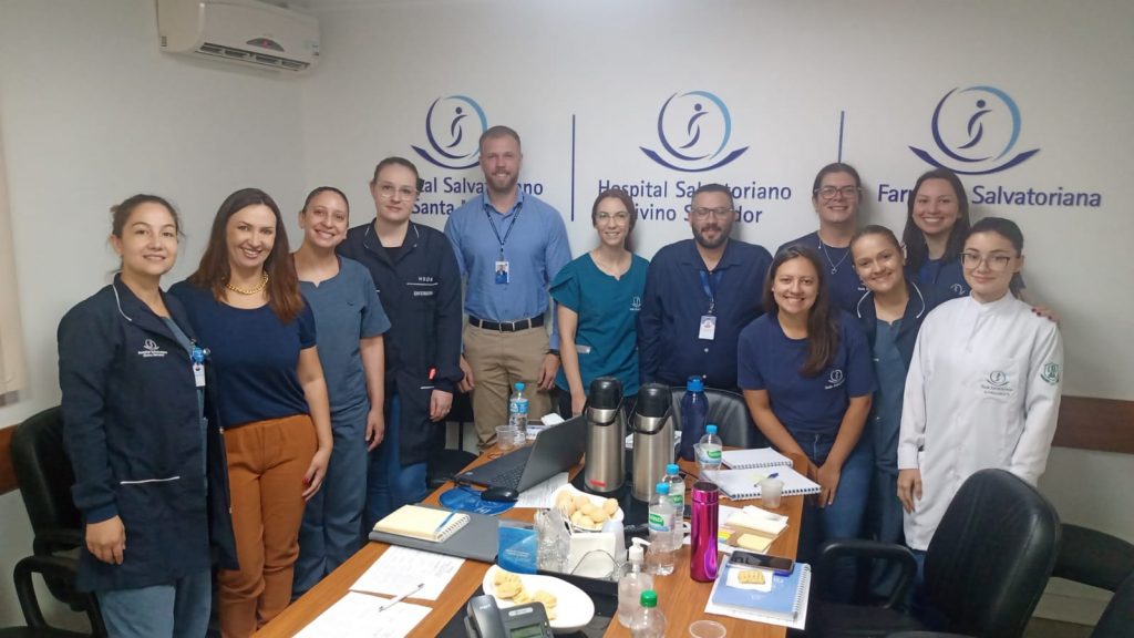 Durante todo o dia, foram repassadas informações detalhadas sobre como o projeto funciona, com foco nas boas práticas para o controle de infecções nas UTIs. Os representantes do Hospital Moinhos de Vento também realizaram uma visita à estrutura do Hospital Salvatoriano Divino Salvador, com ênfase nas UTIs, avaliando os processos e propondo melhorias.