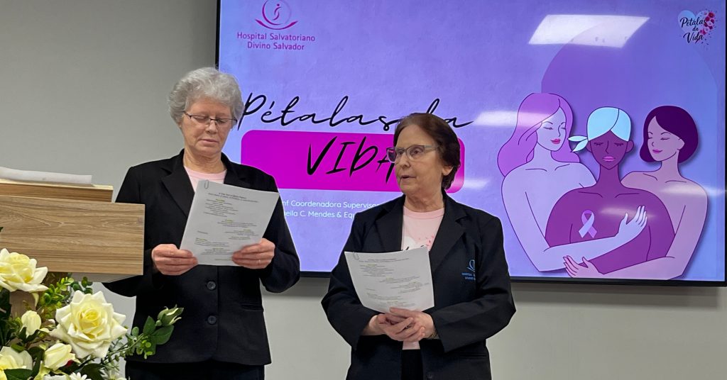 Durante a programação, a enfermeira Sheila Mendes apresentou o projeto “Pétalas da Vida”, uma iniciativa que simboliza esperança, força e amor ao próximo, refletindo o acolhimento e o cuidado integral oferecidos pela Rede Salvatoriana às mulheres em tratamento oncológico. O projeto busca promover um ambiente de apoio e escuta, valorizando a dimensão humana e emocional no processo de cura.