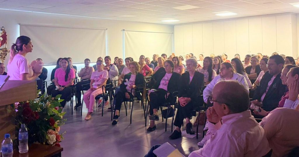 A Rede Salvatoriana promoveu, na última quinta-feira (30), uma tarde especial de conscientização sobre o câncer de mama no Hospital Salvatoriano Divino Salvador, em alusão à campanha Outubro Rosa. O evento reforçou o compromisso da instituição com a prevenção, o diagnóstico precoce e o cuidado humanizado com as mulheres.