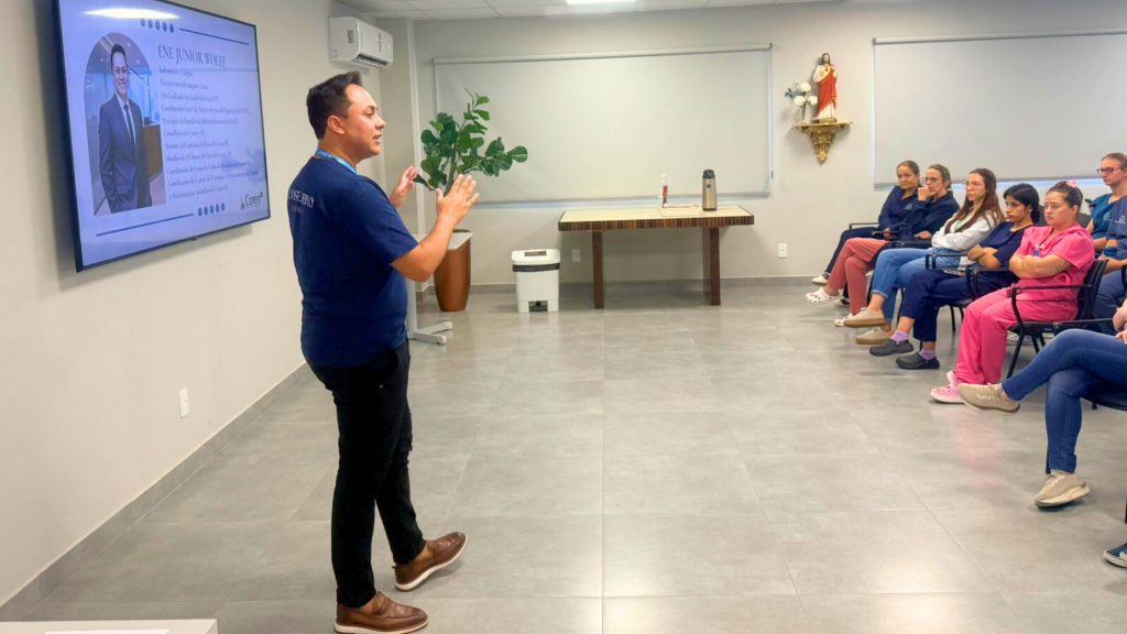 O encontro foi mediado pelo enfermeiro Junior Wolff, conselheiro do COREN-SC. Durante a palestra, ele conduziu a conversa com orientações e reflexões sobre conduta ética, além de destacar a importância do fortalecimento das relações no ambiente de trabalho.