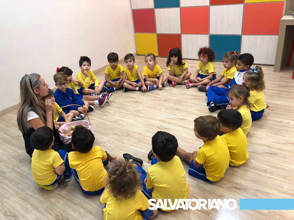 As turminhas do Contraturno encantaram-se com a história da Páscoa e o grande amor de Deus por seus filhos. Páscoa é renascimento, amor, união, solidariedade e partilha. Por este motivo as crianças colocaram a mão na massa e prepararam um delicioso pão para partilhar com os colegas, assim como Jesus fez na Santa Ceia.