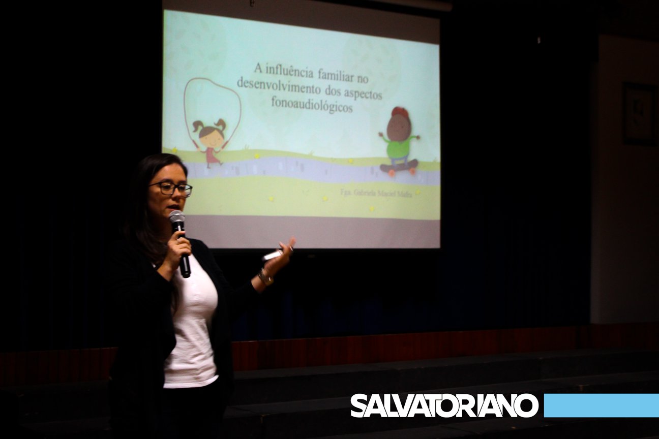 O tema abordado foi: “A influência familiar no desenvolvimento dos aspectos fonoaudiológicos” e tivemos como palestrante a Fonoaudióloga e Pedagoga Gabriela Mafra, educadora salvatoriana e ex-aluna do Colégio.