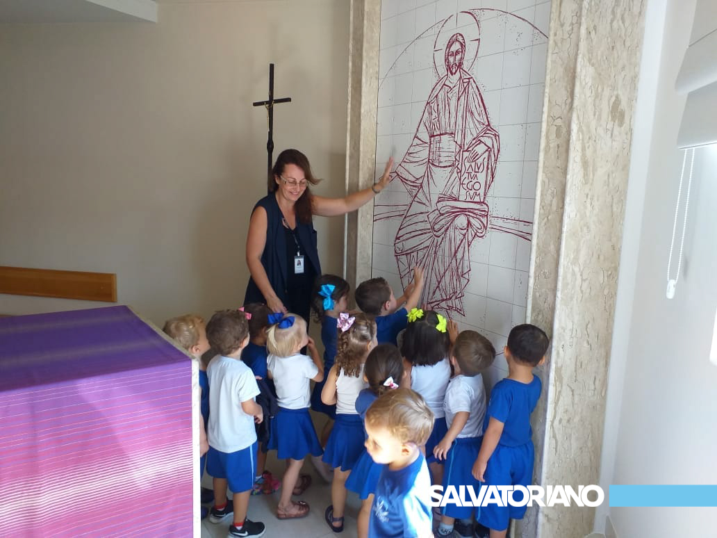 Ensinar uma criança a rezar é um ato de amor. Uma criança quando reza, coloca o seu coração em ligação direta com Deus. A oração do Anjo da Guarda para as crianças também é fundamental para pedir proteção e que os anjos estejam sempre ao seu lado. Desse modo que os mediados vivenciaram estes momentos de reflexão através da oração, visita ao oratório e atividades com materiais diversos, onde enfeitaram a imagem e a oração do Santo Anjo.