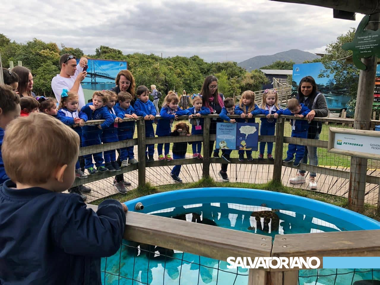 A visita ao Projeto, na Barra da Lagoa, visava aproximar as crianças do ambiente marítimo e das tartarugas, espécie ameaçada pelos plásticos que poluem os oceanos. Lá, puderam ver diferentes tartarugas, conhecer as necessidades delas, além de descobrirem a importância de mantermos limpas nossas praias e mares.