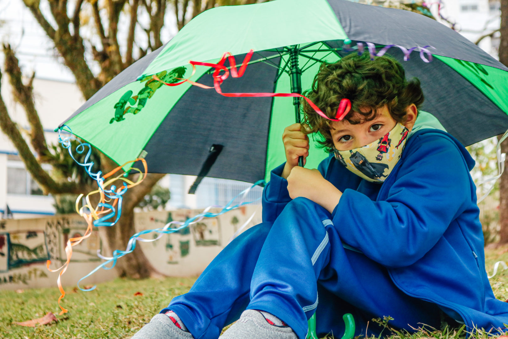 Após a reflexão, os estudantes trabalharam a coordenação motora ao amarrar os fitilhos coloridos no guarda-chuva, estabelecendo assim a relação de algo lúdico e divertido.