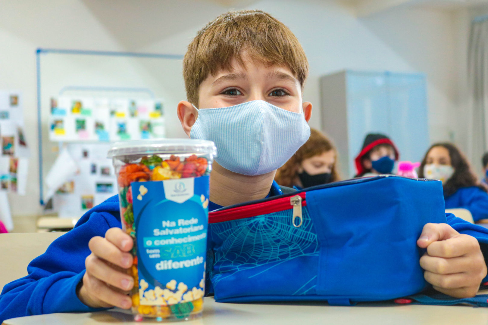 Hoje, no Dia do Estudante, nossos alunos foram surpreendidos com algumas surpresas durante o período de aula. Tivemos as bênçãos pelo Setor de Pastoral, vídeos produzidos por educadores e uma pipoca colorida como presente.