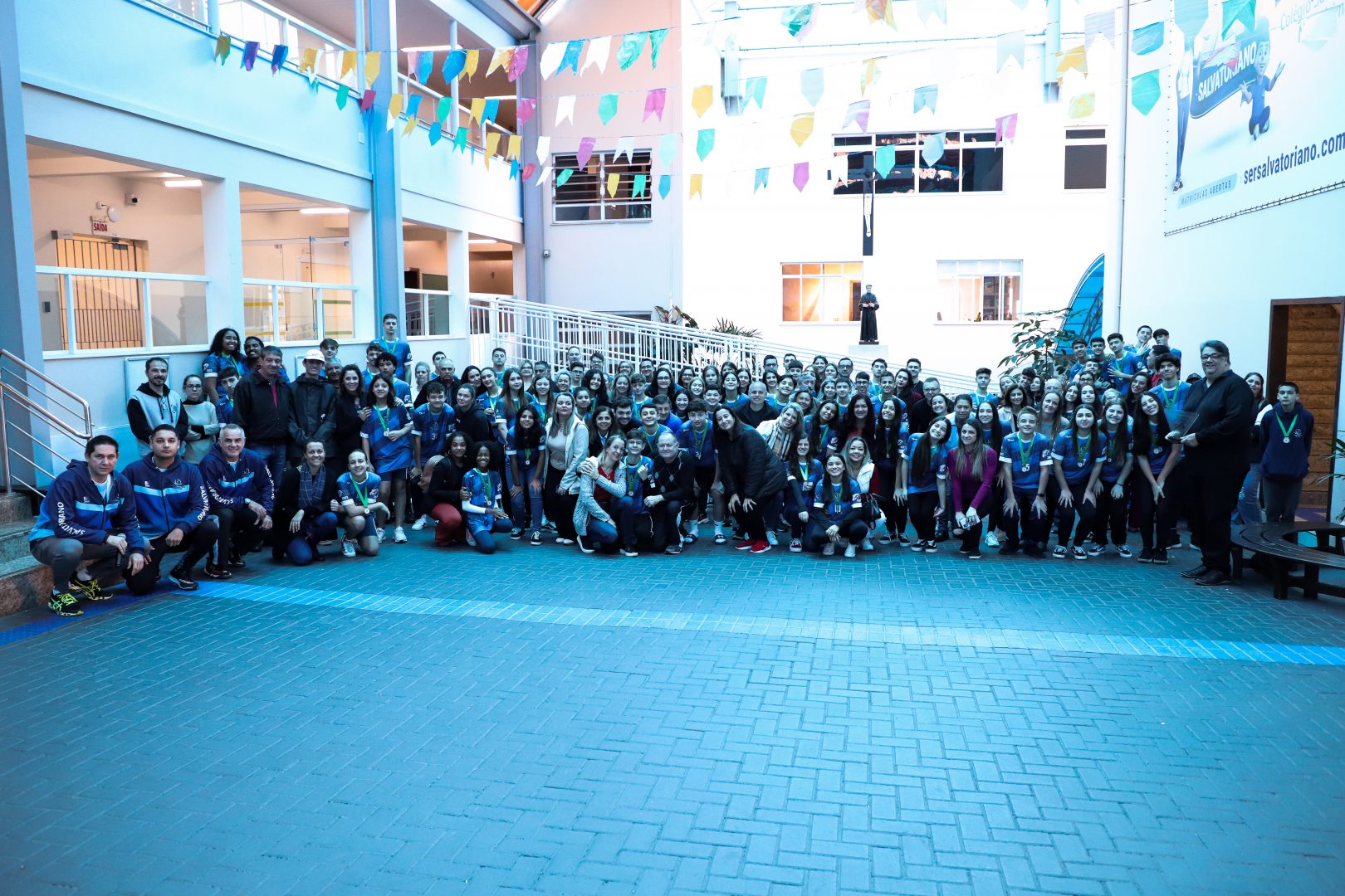 Hoje, num momento muito especial e repleto de significado, de maneira muito simbólica, realizamos as entregas das medalhas aos estudantes que participaram dos Jogos de Integração Salvatoriana, em Jundiaí (SP), na última semana.