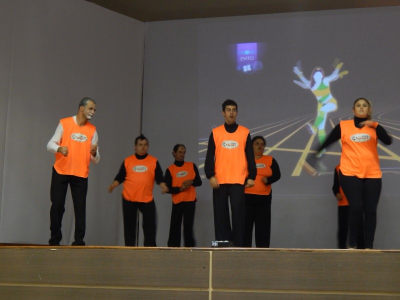 Ontem o colégio promoveu em seu auditório uma reunião para os pais de alunos do Ensino Infantil ao 1º ano do Ensino Fundamental, sobre o ano letivo de 2015. Para recepcionar os presentes, um teatro de alunos da APAE de Videira foi apresentado.