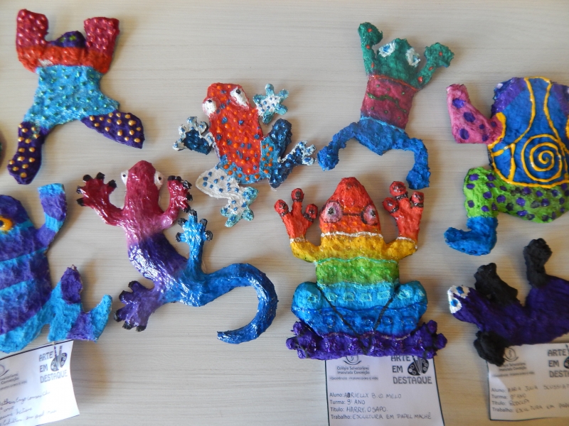 Após visita à exposição de fotos de Radilson Carlos Gomes, Haiti Bombagai, no Museu do Vinho Mário Pellegrin em maio deste ano, os alunos do 9º ano pesquisaram sobre o Movimento Realista nas aulas de artes, produzindo fotos sobre a realidade social de nossa cidade e região. Também pesquisaram sobre a arte e o artesanato haitianos. Do artesanato do Haiti, trouxeram as esculturas dos anfíbios, onde algumas espécies praticamente extintas ainda sobrevivem exclusivamente dentro dos 2% de mata haitiana que restam, fazendo a releitura e trazendo o colorido e a esperança da cultura do povo haitiano.