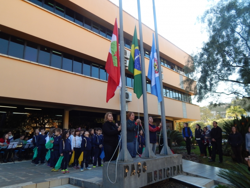 Os educandos dos 3ºs anos 1 e 2 do Colégio Salvatoriano Imaculada Conceição participaram, na tarde que antecede o Dia da Independência do Brasil, das atividades da Semana Cívica Municipal, realizando uma belíssima apresentação na Cerimônia de Arriamento da Bandeira que aconteceu em frente à Prefeitura de nossa cidade.