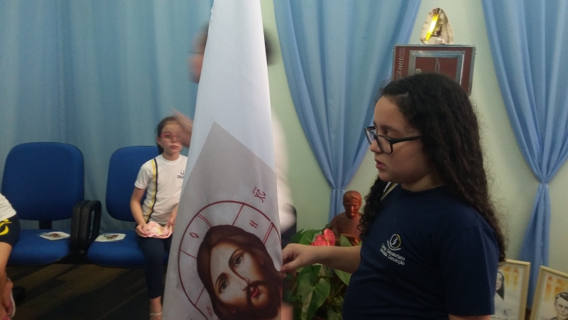 Recebemos no dia 11 de outubro, a Bandeira de Jesus Salvador, entregue pela Ir. Maria Marlene Rizzotto de São José dos Pinhais – PR.Na semana seguinte, a Bandeira de Jesus Salvador visitou as salas de aula.