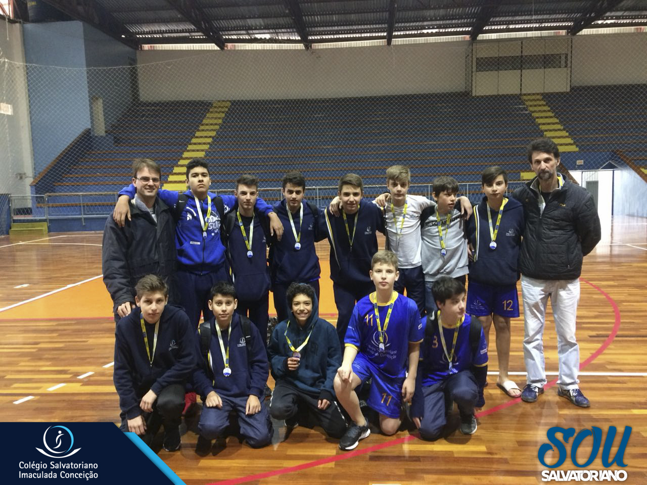 Os meninos do Handebol, categoria 12 a 14 anos, do Colégio Salvatoriano Imaculada Conceição ficaram com o 3º lugar no Microrregional dos JESC.