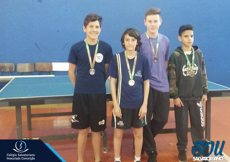 Campeão na categoria 12 a 14 anos, Hugo G. Dias do Tênis de Mesa do Colégio Salvatoriano Imaculada Conceição passou para a fase Reginal dos JESC.