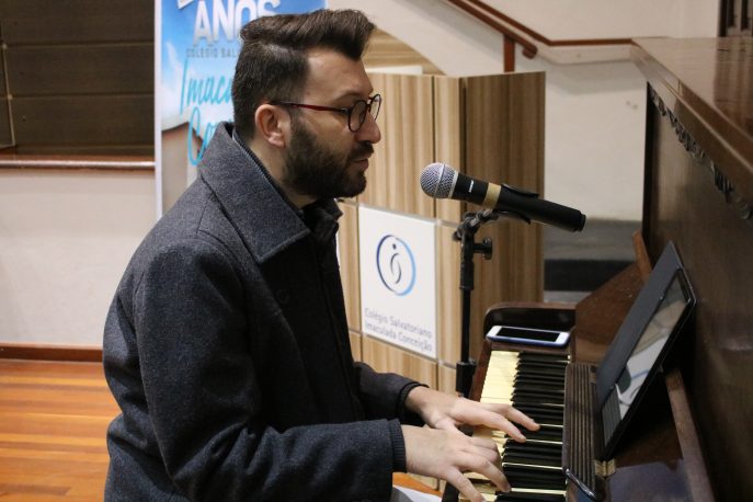 As comemorações do Dia do Estudante começaram com uma fala do Coordenador do Ensino Fundamental II e do Ensino Médio Geraldo Vieceli. A Pastoral Escolar nos presenteou com um belo canto. E, após, o Bispo da Diocese de Caçador/SC Dom Cleocir Bonetti conversou com nossos jovens.