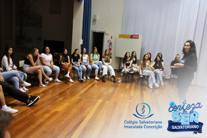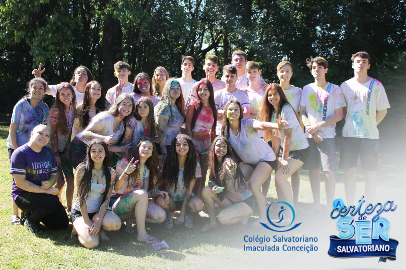 O último dia de aula da turma da 3ª Série do Ensino Médio (18/11) iniciou com a Festa da Cores e futebol de sabão. À noite, os estudantes participaram de um momento de reflexão e partilha.