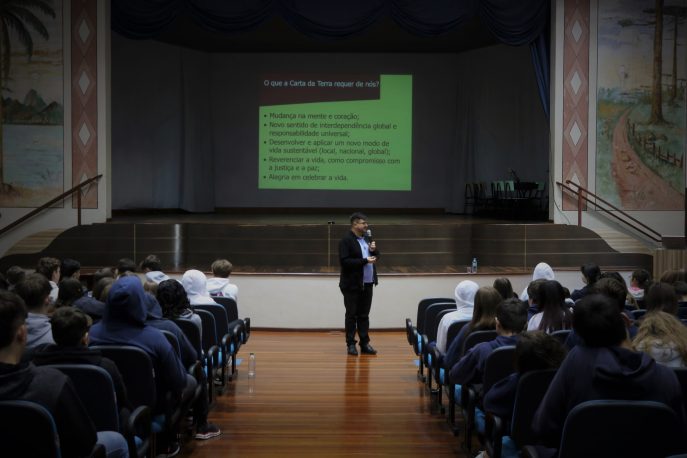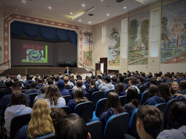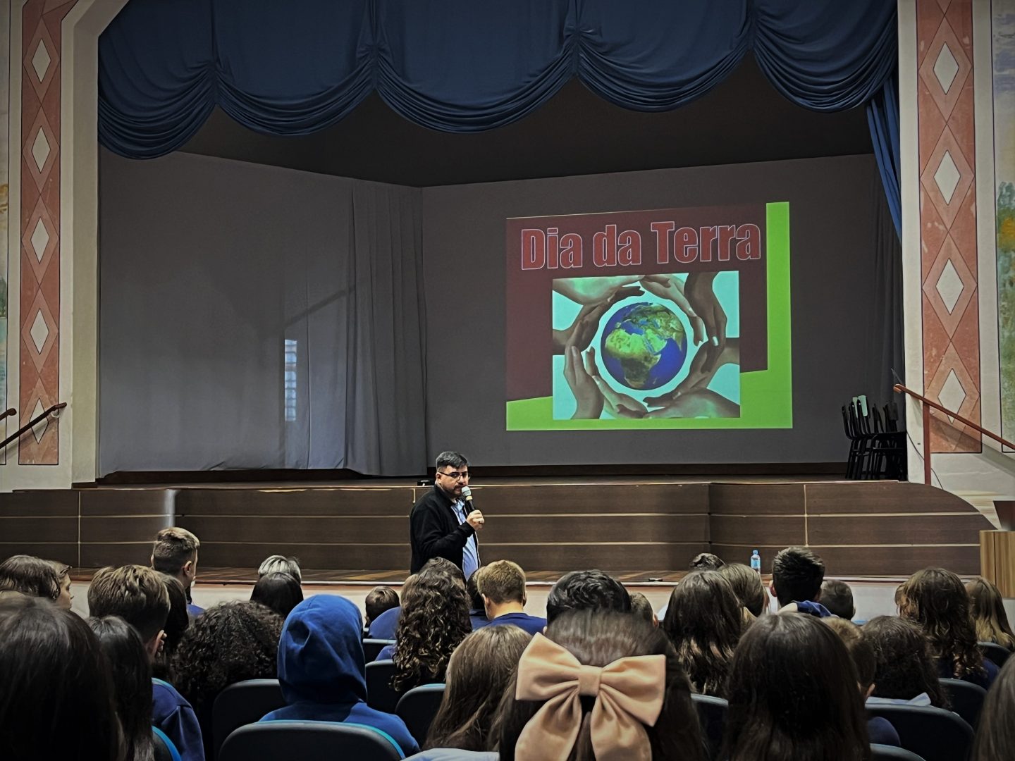 Em celebração ao Dia da Terra, os estudantes do Ensino Fundamental II e Ensino Médio se reuniram, no dia 22 de abril, para uma palestra ministrada por João Luis Antunes.