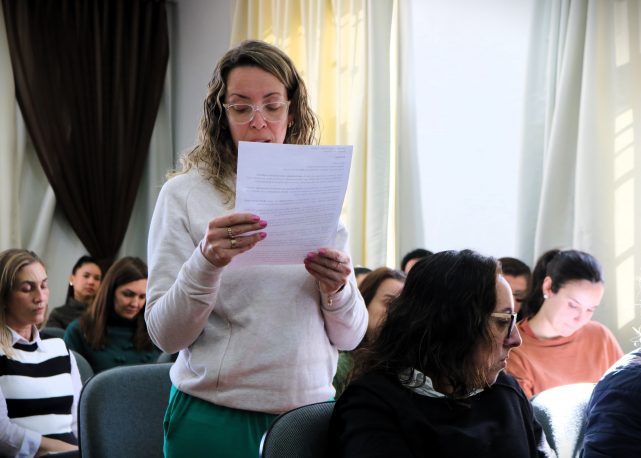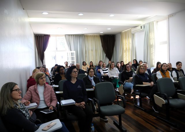 Estiveram presentes educadores dos segmentos da Educação Infantil, Ensino Fundamental – anos iniciais e finais – e do Ensino Médio, bem como direção, coordenadores educacionais e funcionários técnicos administrativos.