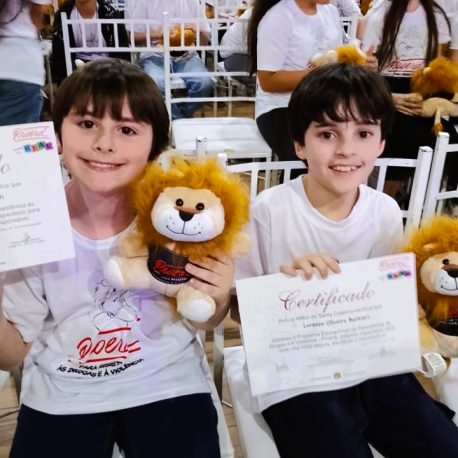As turmas dos 5ºs anos participaram do Programa Educacional de Resistência às Drogas e à Violência (PROERD), da Polícia Militar, que tem como objetivo a prevenção ao uso de drogas e a práticas violentas dentro e fora do ambiente escolar.