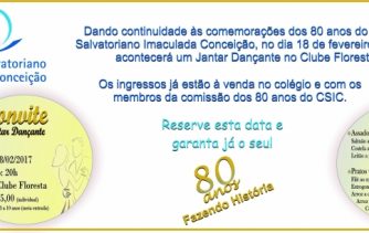 Continue lendoJANTAR DANÇANTE EM COMEMORAÇÃO AOS 80 ANOS DO CSIC ACONTECE EM 18 DE FEVEREIRO DE 2017