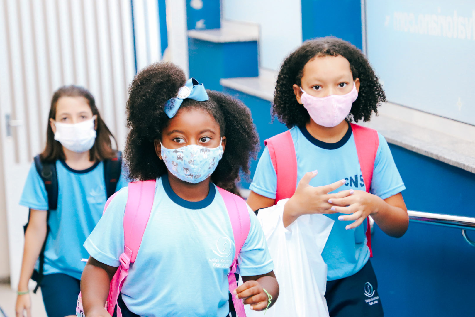 Durante a acolhida, os estudantes do Ensino Fundamental, do 1º ao 7º ano, fizeram um breve momento de oração, receberam informações pertinentes a esse novo momento em que vivemos, com aulas totalmente presenciais, e puderam celebrar a alegria do reencontro com os demais amigos.