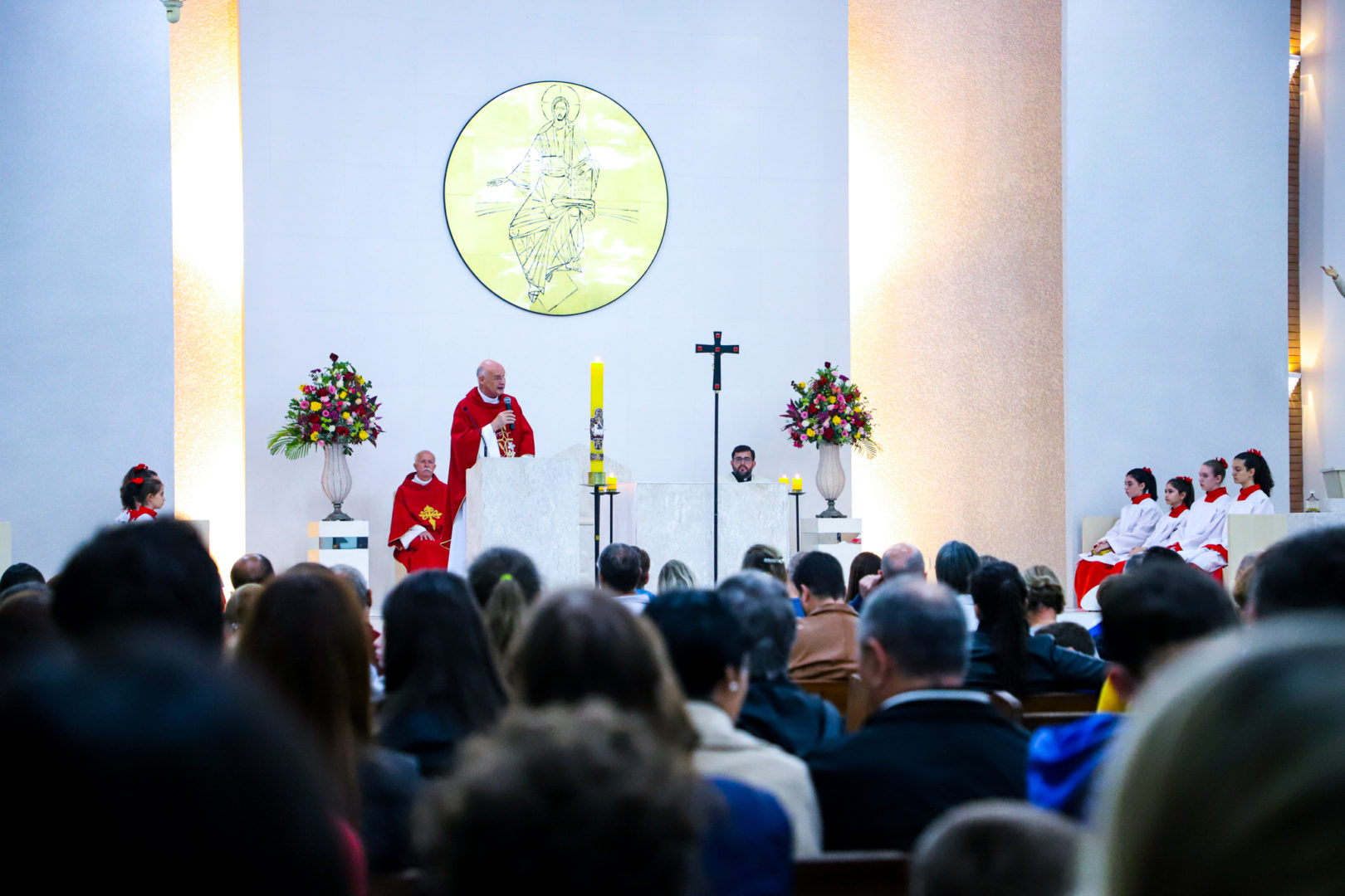 As comunidades educativas dos Colégios Salvatorianos Nossa Senhora de Fátima e Padre Jordan estiveram expressivamente reunidas no dia de ontem, 03 de maio, na Paróquia Nossa Senhora da Glória, no Bairro do Balneário, para participar da Santa Missa pelas Mães.